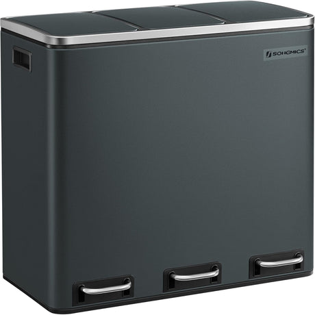 Mülleimer Küche 24L Mülltrennsystem 3 Fächer silbern-schwarz inkl. Müllsäcke
