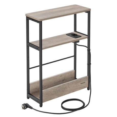 Beistelltisch mit Ladefunktion, 3 Ablagen, schwarz