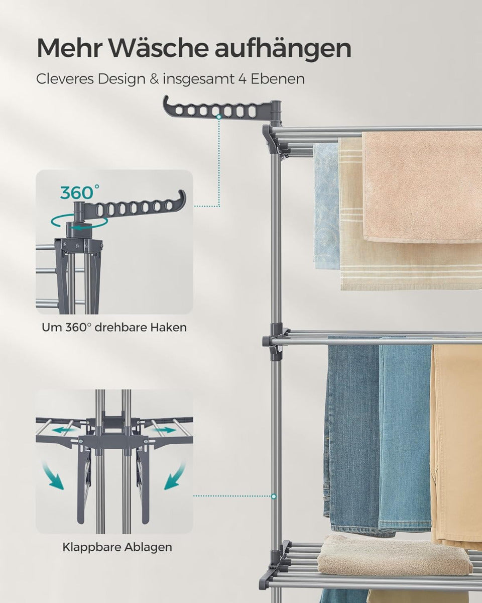 Wäscheständer Standtrockner 4 Ebenen mit Rollen
