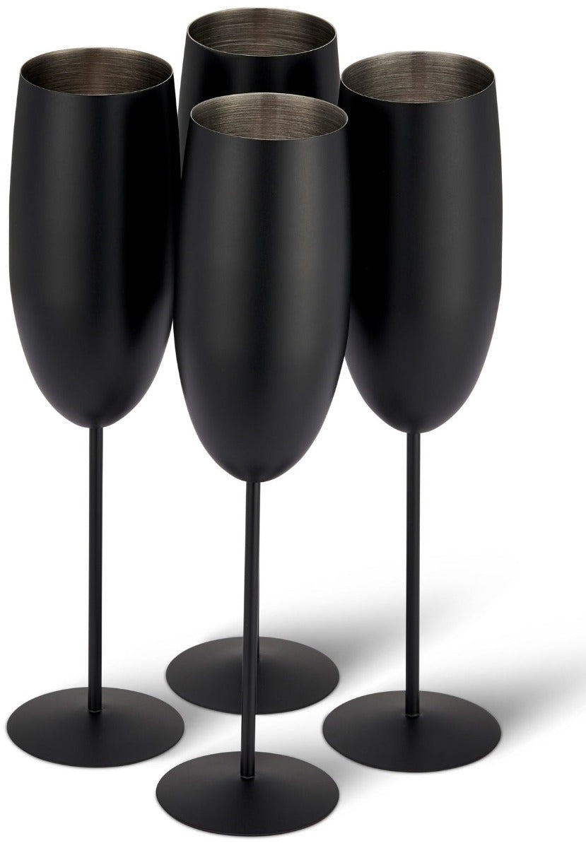 Edelstahl Sektgläser Flute Schwarz Matt 4er-Set