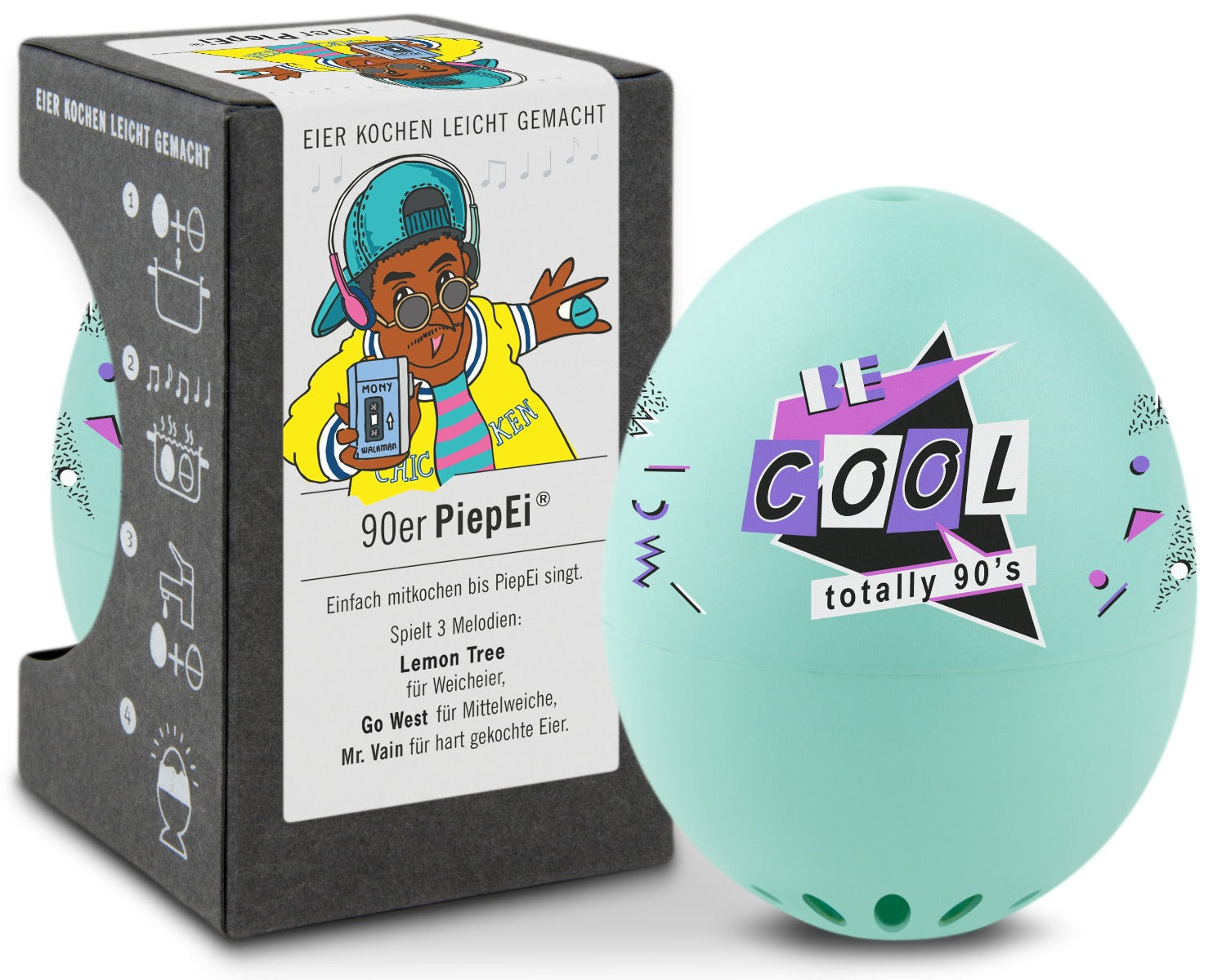 Einfache Nutzung: PiepEi zusammen mit den Eiern lagern, zusammen im Kochtopf kochen und warten bis PiepEi die passende Melodie spielt. Jetzt Eier und PiepEi gemeinsam abschrecken und das perfekt gekochte Ei geniessen. Drei Melodien für drei Härtegrade: Ob weich, mittelweich oder hart gekocht, PiepEi spielt für jede Stufe eine andere Melodie. "LEMON TREE" für weich gekochte Eier, "GO WEST" für das perfekte mittelweiche Ei und "MR. VAIN" sobald das hart gekochte Ei fertig ist. Funktionale Geschenkidee: Ein schönes Geschenk zu jedem Anlass. Sorgt für ein Schmunzeln und hat eine smarte Funktion. Der perfekte Eierkocher! Mehr als nur ein Timer: PiepEi basiert auf einem thermischen Modell. WICHTIG ist daher, dass PiepEi und die Eier zusammen gelagert werden, damit die Ausgangstemperatur identisch ist. Dann ist es auch egal, ob man den Kochvorgang mit kaltem oder kochendem Wasser beginnt. Funktioniert überall: Durch die temperaturbasierte Technologie ist es egal, wie viele Eier man zeitgleich kocht. Man kann auch verschiedene Härtegrade in einem Kochvorgang kochen (geht im herkömmlichen Eierkocher nicht). Einfach die jeweiligen Eier bei der passenden Melodie herausnehmen. PiepEi funktioniert übrigens auf allen Höhen (in den Bergen kocht Wasser bei einer anderen Temperatur). Made in Germany: In Deutschland entwickelt und hergestellt.