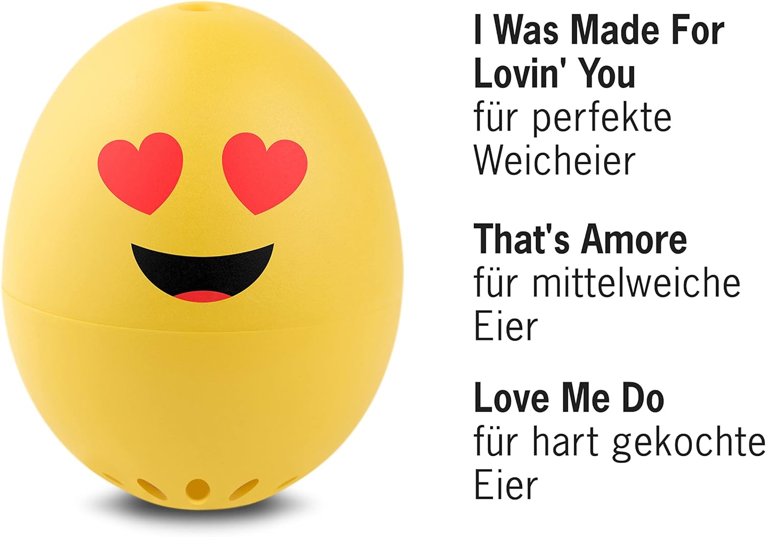 Zu weich, zu hart – aber nie auf den Punkt. Perfekt gekochte Eier sind eine Wissenschaft für sich. Für das PiepEi aber kein Problem. Einfach mit den Eiern lagern, zusammen mit den Eiern kochen und warten bis das PiepEi singt. Egal mit welcher Wassertemperatur man startet und egal auf welcher Höhe man kocht, das Ei wird perfekt.Ob weich, mittelweich oder hart gekocht, das HDL PiepEi spielt für jede Stufe eine andere Melodie. "I WAS MADE FOR LOVIN YOU BABY" für weich gekochte Eier, "THAT'S AMORE" für das perfekte mittelweiche Ei und "LOVEME DO" sobald das hart gekochte Ei fertig ist.