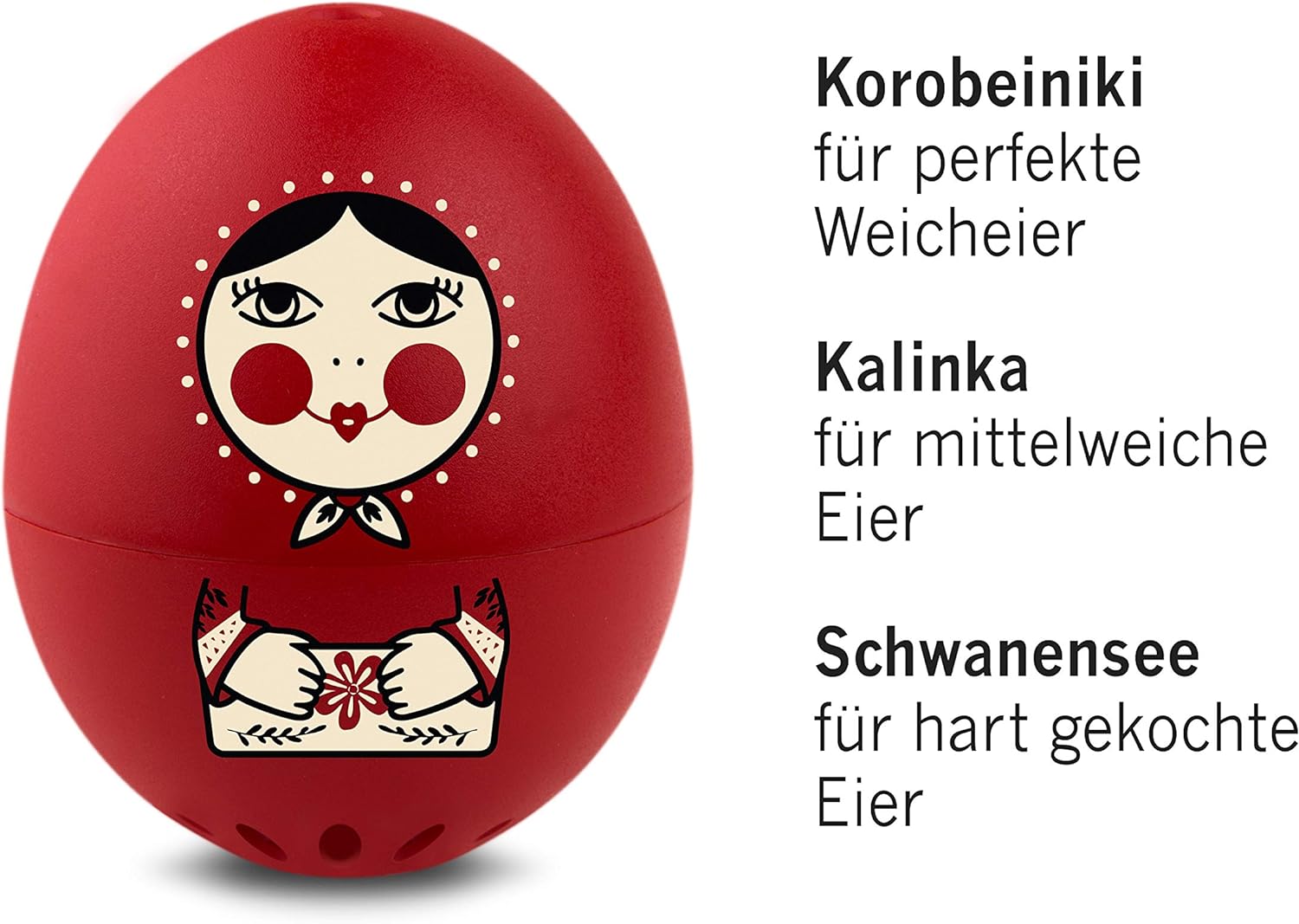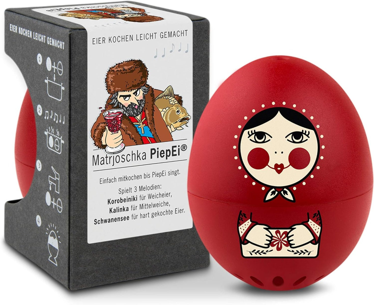 Einfache Nutzung: PiepEi zusammen mit den Eiern lagern, zusammen im Kochtopf kochen und warten bis PiepEi die passende Melodie spielt. Jetzt Eier und PiepEi gemeinsam abschrecken und das perfekt gekochte Ei geniessen. Drei Melodien für drei Härtegrade: Ob weich, mittelweich oder hart gekocht, Matrjoschka PiepEi trällert für jede Stufe eine andere Melodie. "KOROBEINIKI" für weich gekochte Eier, "KALINKA" für das perfekte mittelweiche Ei und "SCHWANENSEE" sobald das hart gekochte Ei fertig ist. Funktionale Geschenkidee: Ein schönes Geschenk zu jedem Anlass. Sorgt für ein Schmunzeln und hat eine smarte Funktion. Der perfekte Eierkocher! Mehr als nur ein Timer: PiepEi basiert auf einem thermischen Modell. WICHTIG ist daher, dass PiepEi und die Eier zusammen gelagert werden, damit die Ausgangstemperatur identisch ist. Dann ist es auch egal, ob man den Kochvorgang mit kaltem oder kochendem Wasser beginnt. Funktioniert überall: Durch die temperaturbasierte Technologie ist es egal, wie viele Eier man zeitgleich kocht. Man kann auch verschiedene Härtegrade in einem Kochvorgang kochen (geht im herkömmlichen Eierkocher nicht). Einfach die jeweiligen Eier bei der passenden Melodie herausnehmen. PiepEi funktioniert übrigens auf allen Höhen (in den Bergen kocht Wasser bei einer anderen Temperatur). Made in Germany: In Deutschland entwickelt und hergestellt.