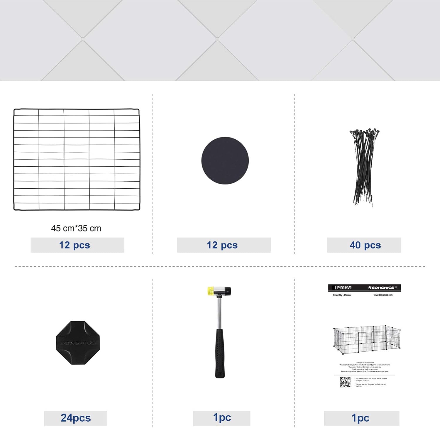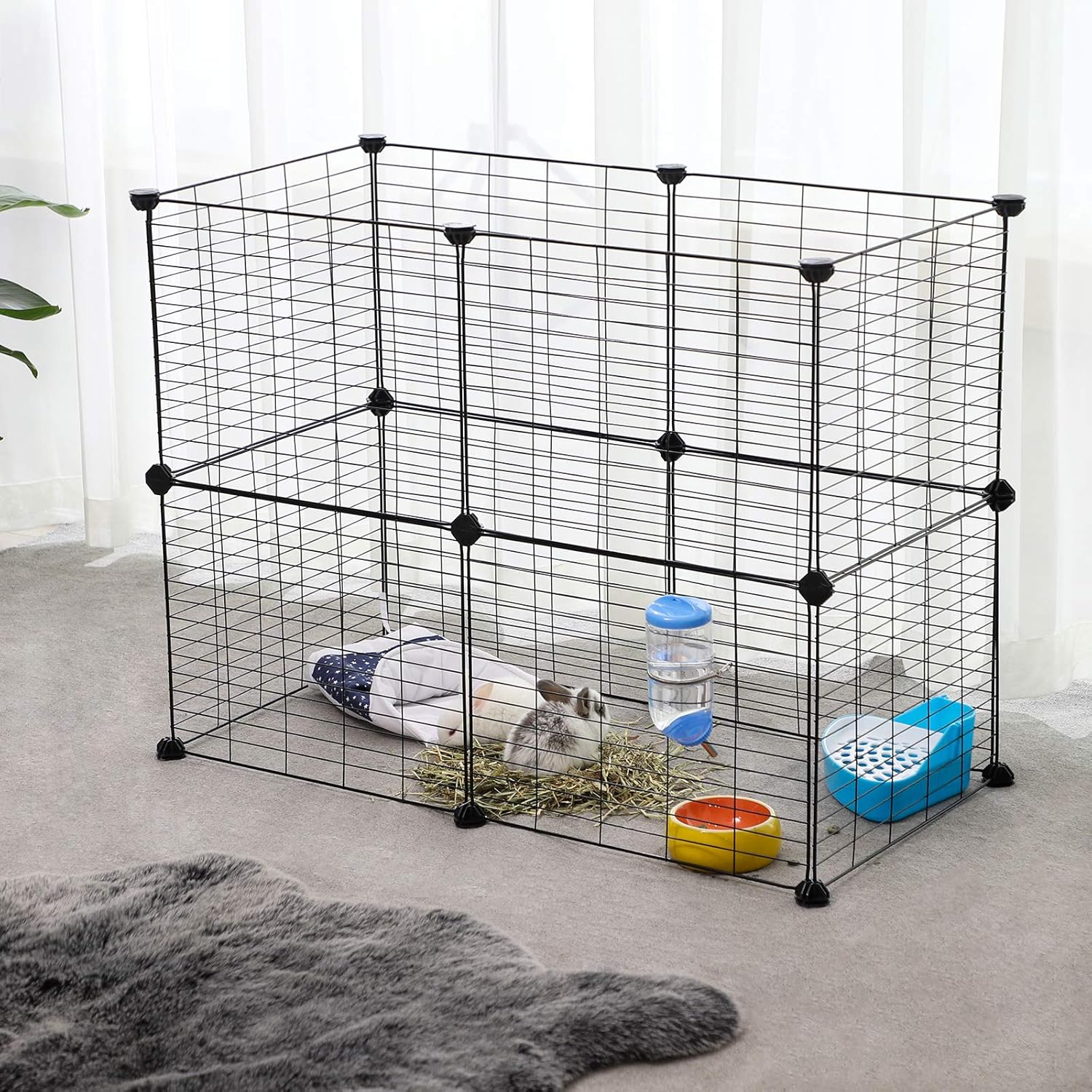 Großzügiger Auslauf für Kaninchen und Meerschweinchen, Sichere 2,2‑cm-Maschen und stabile ABS-Verbinder, Modularer DIY-Aufbau mit Anti-Rutsch-Pads und Zubehör