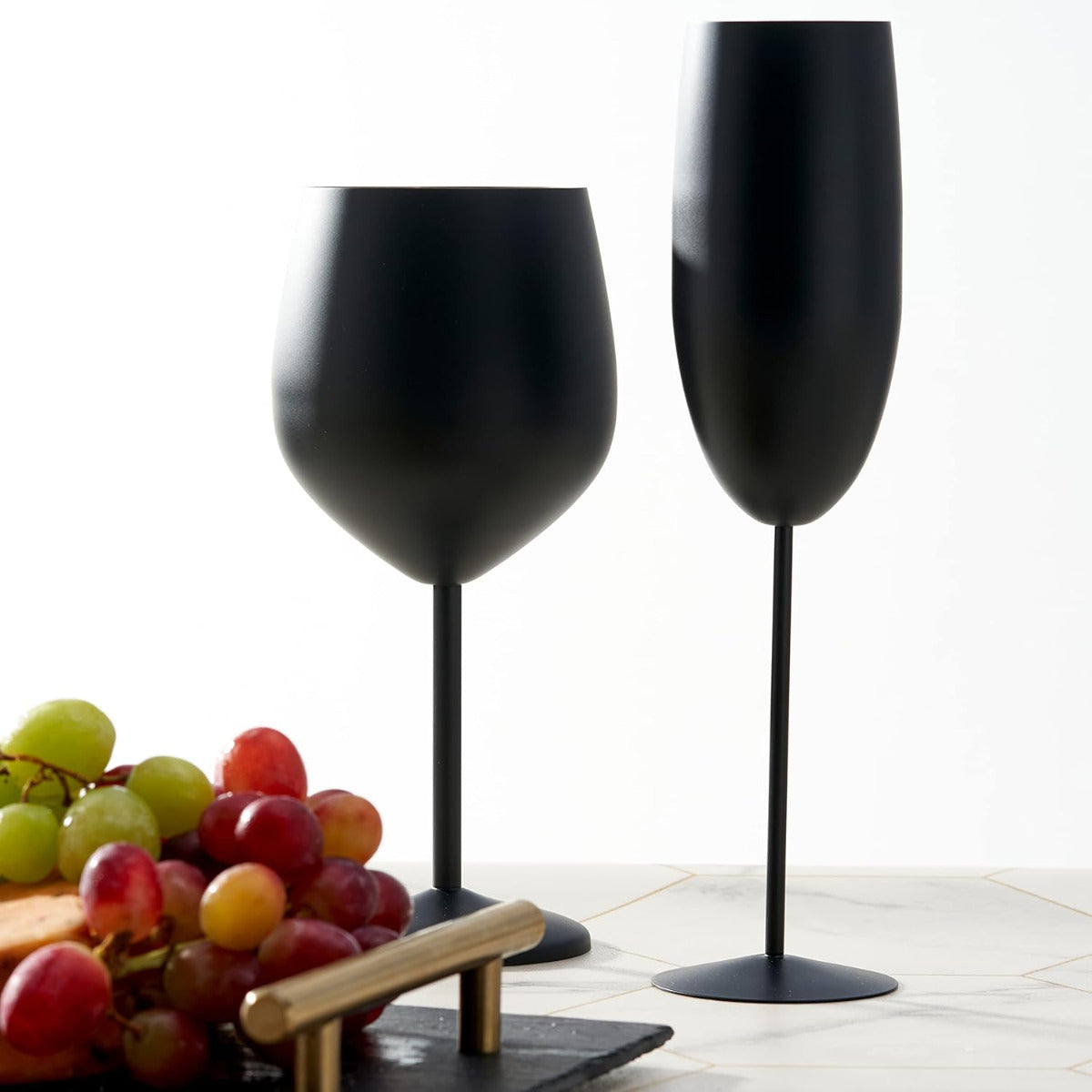Edelstahl Sektgläser Flute Schwarz Matt 2er-Set - Stilvoll anstossen ohne Bruchgefahr Bringe moderne Eleganz in deine Feier! Die Edelstahl Sektgläser Flute in mattem Schwarz vereinen stilvolles Design mit absoluter Funktionalität. Ihr schlankes, zeitloses Erscheinungsbild macht sie zur perfekten Wahl für festliche Anlässe, sei es eine Hochzeit, ein Geburtstag oder ein stilvoller Empfang. Dank der mattschwarzen Oberfläche setzen sie in jedem Ambiente besondere Akzente und verleihen deinem Tisch einen Hauch von Luxus. Diese Sektgläser bestehen aus hochwertigem Edelstahl und sind praktisch unzerbrechlich. Ob ausgelassene Partys, gemütliche Gartenfeste oder Picknicks unter freiem Himmel – du musst dir keine Sorgen mehr um zerbrochenes Glas machen. Zudem sorgen die isolierenden Eigenschaften des Materials dafür, dass dein Getränk länger kühl bleibt und du deinen Sekt oder Champagner in perfekter Temperatur geniessen kannst. Das 2er-Set ist nicht nur praktisch, sondern auch eine hervorragende Geschenkidee für stilbewusste Gastgeber und Sektliebhaber. Die Gläser werden in einer eleganten Verpackung geliefert und sind ideal für besondere Anlässe oder als stilvolle Ergänzung deiner Bar-Ausstattung. Hebe dein Trinkerlebnis auf ein neues Level und stosse mit Stil an! Infos zu diesem Artikel: Modernes, elegantes Design: Mattschwarze Oberfläche für luxuriösen Look Bruchsicher & langlebig: Edelstahlkonstruktion für maximale Robustheit Perfekt für drinnen & draussen: Ideal für Partys, Hochzeiten & Picknicks Hält Getränke länger kühl: Optimale Temperaturerhaltung für maximalen Genuss Tolles Geschenkset: Perfekt für Sektliebhaber & stilvolle Gastgeber