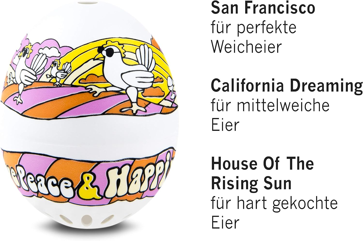 Einfache Nutzung mit melodischer Anleitung, Drei Härtegrade durch unterschiedliche Melodien, Funktioniert überall und für verschiedene Eier gleichzeitig.