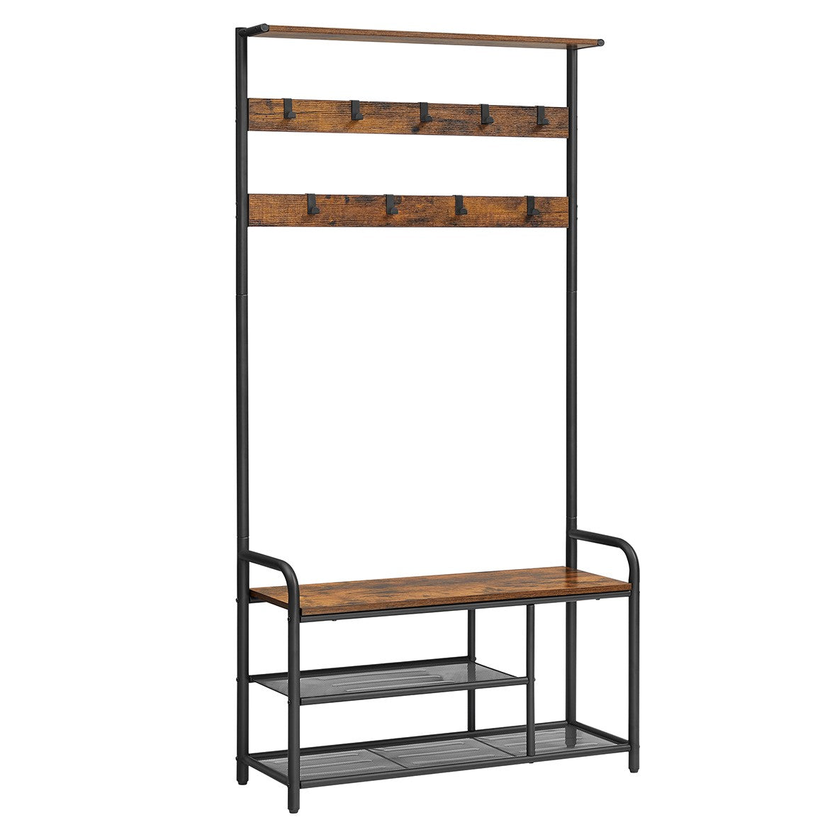 Garderobenständer mit Schuhbank und abnehmbaren Haken Vintagebraun-Schwarz