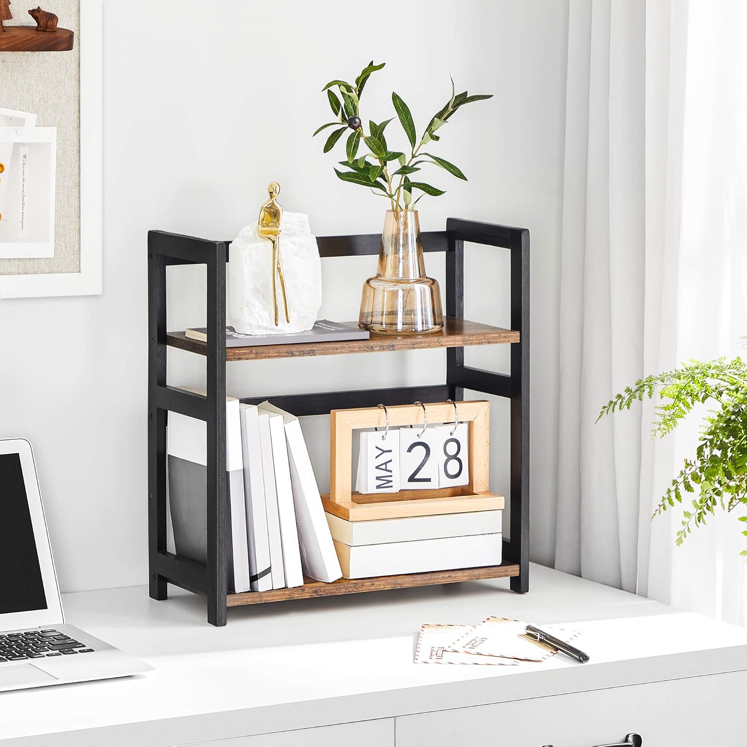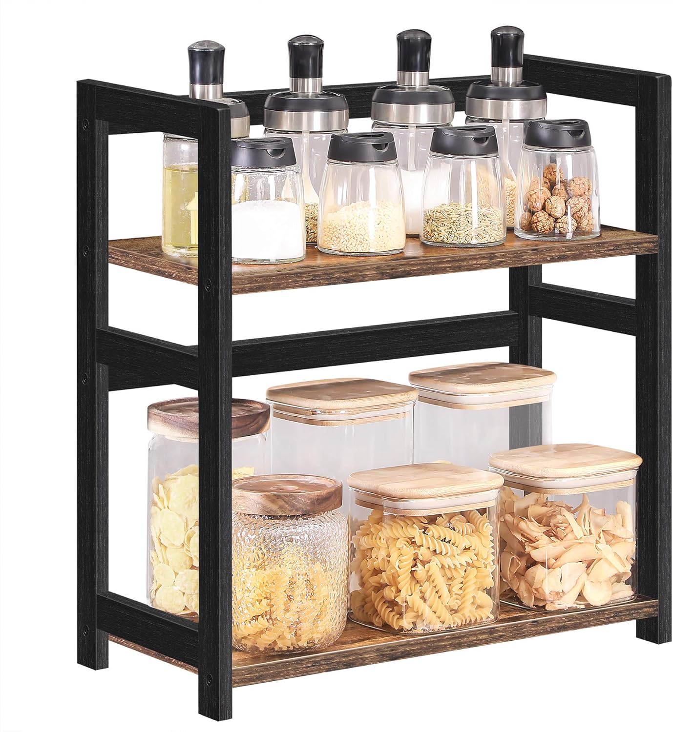Entdecken Sie das SONGMICS Gewürzregal mit 2 Ebenen – die perfekte Lösung für alle Kochliebhaber, die Ordnung in ihrer Küche schaffen möchten! Mit diesem stilvollen Küchenregal aus robustem Bambus und technischem Holz bringen Sie nicht nur Struktur, sondern auch einen Hauch von rustikalem Charme in Ihre Kochumgebung. Dank der zwei grosszügigen Regale haben Sie ausreichend Platz für all Ihre Gewürze, von süss bis salzig, und können Ihre Kochkünste voll entfalten, ohne von einer unordentlichen Arbeitsplatte abgelenkt zu werden. Das vintagebraun-schwarze Design fügt sich harmonisch in jede Kücheneinrichtung ein und sorgt für eine ansprechende Optik. Doch das SONGMICS Gewürzregal ist nicht nur auf die Küche beschränkt! Nutzen Sie es als praktischen Schreibtisch-Organizer, um Ihre Büroartikel stilvoll zu präsentieren, oder stellen Sie es im Badezimmer auf, um Ihre Pflege- und Make-up-Produkte ordentlich zu verstauen. Auch im Wohnzimmer macht es sich hervorragend als stilvolle Ablage für Ihre Tassensammlung. Die Montage ist ein Kinderspiel! Mit nummerierten Teilen und einer bebilderten Anleitung ist der Aufbau schnell erledigt, sodass Sie mehr Zeit für das Zubereiten köstlicher Gerichte und das Geniessen schöner Momente mit Ihren Liebsten haben. Verleihen Sie Ihrer Küche und Ihrem Zuhause mit dem SONGMICS Gewürzregal den perfekten Touch von Stil und Funktionalität!