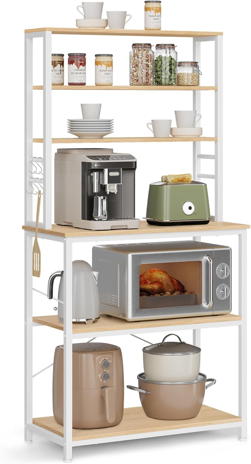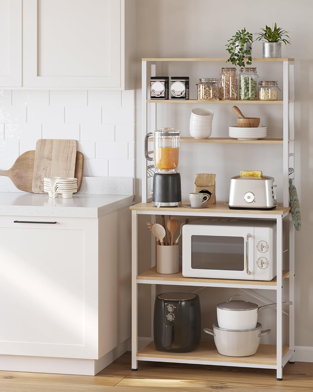 Entdecken Sie das SONGMICS Küchenregal, das nicht nur Ihre Küche organisiert, sondern auch einen stilvollen Platz für Ihre Geräte und eine gemütliche Essecke schafft. Mit seiner robusten Bauweise und flexiblen Ablagen ist es die ideale Lösung für jeden Küchenraum.