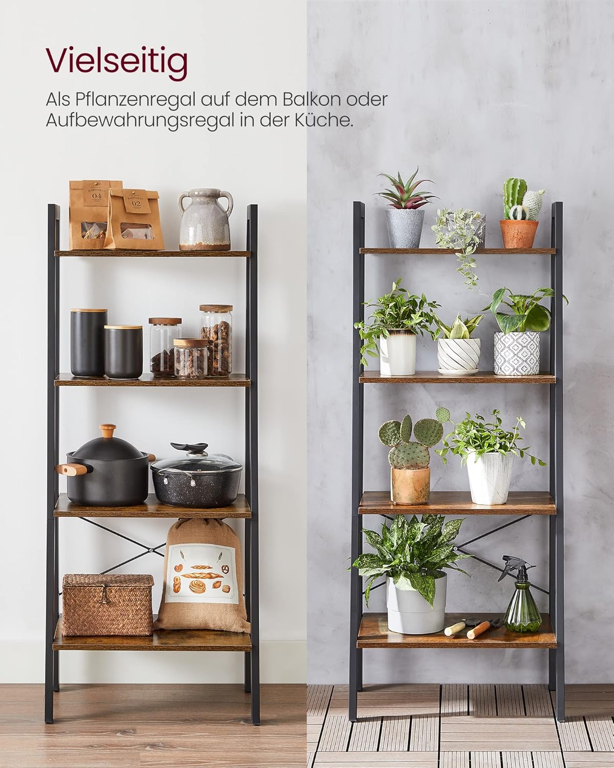 Entdecken Sie das SONGMICS Regal – Ihr neues Lieblingsmöbelstück für jeden Raum! Mit seinem stilvollen Industrie-Design in vintagebraun und schwarz bringt dieses Bücherregal nicht nur Ordnung in Ihr Zuhause, sondern setzt auch einen modernen Akzent. Das Regal misst 56 x 34 x 137,5 cm und bietet auf 4 stabilen Ebenen ausreichend Platz für Bücher, Pflanzen oder Dekorationen. Dank der robusten Konstruktion aus solidem Stahlrahmen und hochwertigen Spanplatten ist es nicht nur langlebig, sondern auch äusserst stabil. Die stützenden X-Streben und verstellbaren Füsse sorgen dafür, dass das Regal auch auf unebenen Böden sicher steht. Zudem sind praktische Kippschutzteile integriert, die zusätzliche Sicherheit bieten. Mit einem grosszügigen Abstand von 33 cm zwischen den Ablagen ist das Regal ideal für grosse Gegenstände geeignet. Der 19 cm hohe Abstand vom untersten Regalboden bis zum Boden ermöglicht es sogar, einen Saugroboter problemlos darunter zu parken. Egal, ob im Wohnzimmer, Schlafzimmer, in der Küche oder im Homeoffice – dieses vielseitige Standregal macht überall eine gute Figur. Nutzen Sie es als stilvolles Aufbewahrungsregal, als Pflanzenregal auf dem Balkon oder als praktisches Bücherregal im Büro. Die Montage ist ein Kinderspiel! Dank klar gekennzeichneter Teile und einer leicht verständlichen Anleitung können Sie Ihr neues Regal im Handumdrehen aufbauen. Bringen Sie mit dem SONGMICS Regal nicht nur Ordnung, sondern auch Stil in Ihr Zuhause!