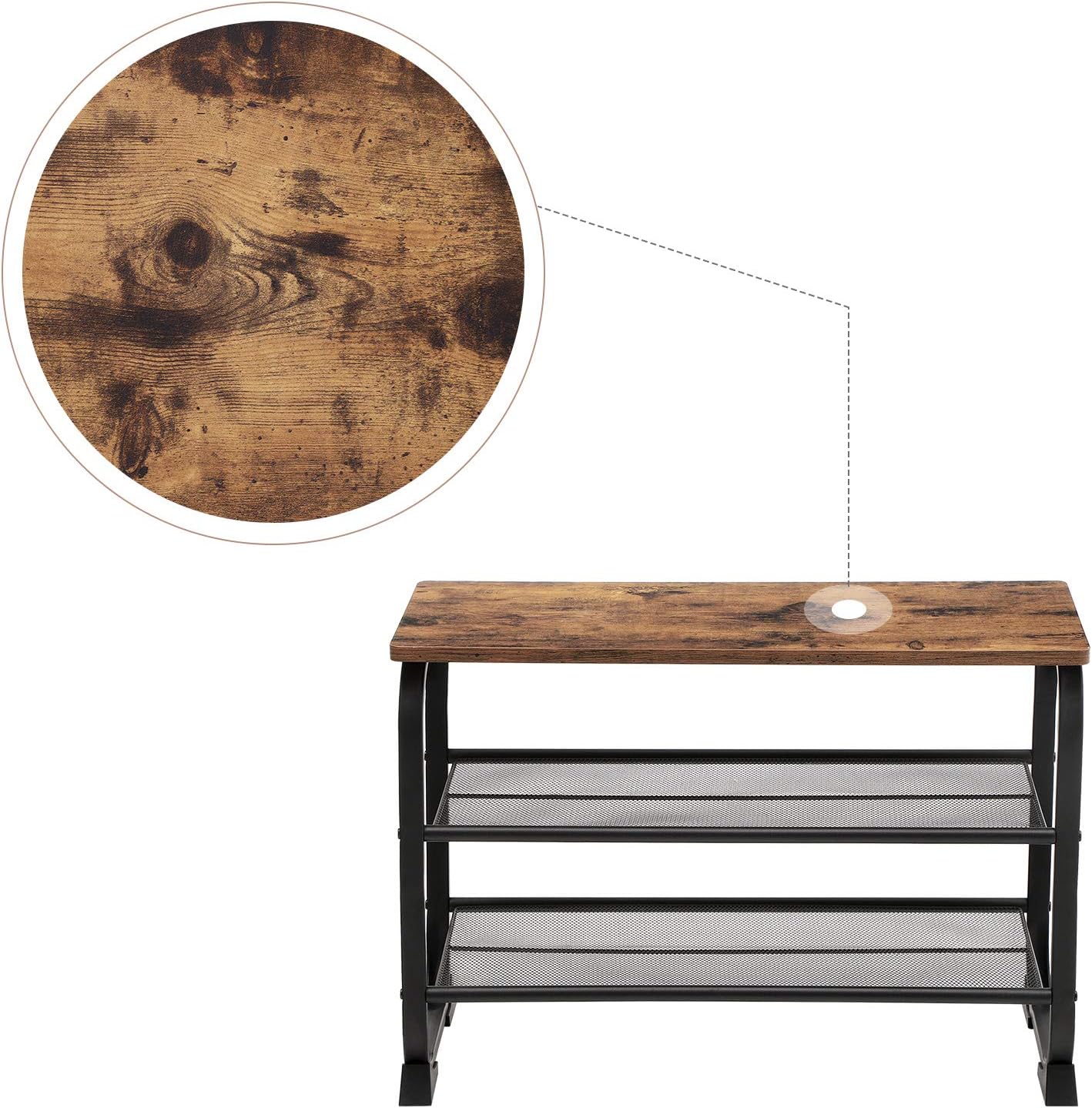 Entdecken Sie die SONGMICS Schuhbank im angesagten Industrie Design – die perfekte Kombination aus Stil und Funktionalität! Mit ihren schönen Kurven und der Vintage-Oberfläche in Holzoptik bringt diese Schuhbank nicht nur Ordnung in Ihren Eingangsbereich, sondern wertet auch Ihr Zuhause auf. Der abgerundete Stahlrahmen sorgt für ein modernes Flair ohne scharfe Kanten. Dieses platzsparende Schuhregal ist vielseitig einsetzbar: Ob im kleinen Flur, im Wohnzimmer oder sogar in der Garage – es bietet Ihnen überall zusätzliche Staufläche. Auch in einem begehbaren Kleiderschrank macht es eine hervorragende Figur. Mit Platz für bis zu 6 Paar Schuhe auf den beiden stabilen Gitterablagen und einer praktischen Oberfläche, auf der Sie Ihre Handtasche ablegen können, ist es der ideale Begleiter für jeden Schuhliebhaber. Die SONGMICS Schuhbank ist nicht nur schick, sondern auch robust: Mit einer Belastbarkeit von bis zu 90 kg eignet sie sich hervorragend als Sitzbank. So wird das Anziehen Ihrer Schuhe zum Kinderspiel! Die speziell designten Kunststofffüsse schützen Ihren Boden vor Kratzern und sorgen für zusätzliche Stabilität. Die Montage ist kinderleicht, und unser freundlicher Kundenservice steht Ihnen jederzeit zur Verfügung. Zögern Sie nicht und bringen Sie mit dieser flexiblen Schuhbank frischen Wind in Ihr Zuhause!