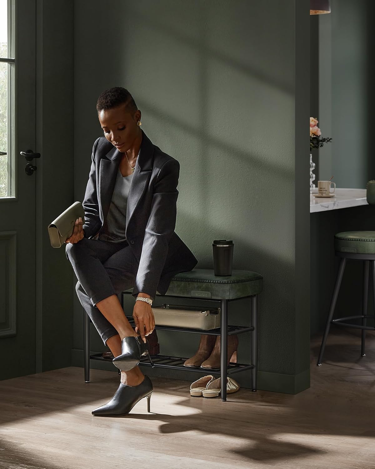 Die preisgekrönte VASAGLE EKHO Schuhbank in Waldgrün vereint elegantes Mid-Century-Design, bequeme Polsterung und eine stabile Stahlkonstruktion mit praktischer 3-Ebenen-Schuhablage – eine stilvolle, komfortable und funktionale Lösung für jeden Eingangsbereich.