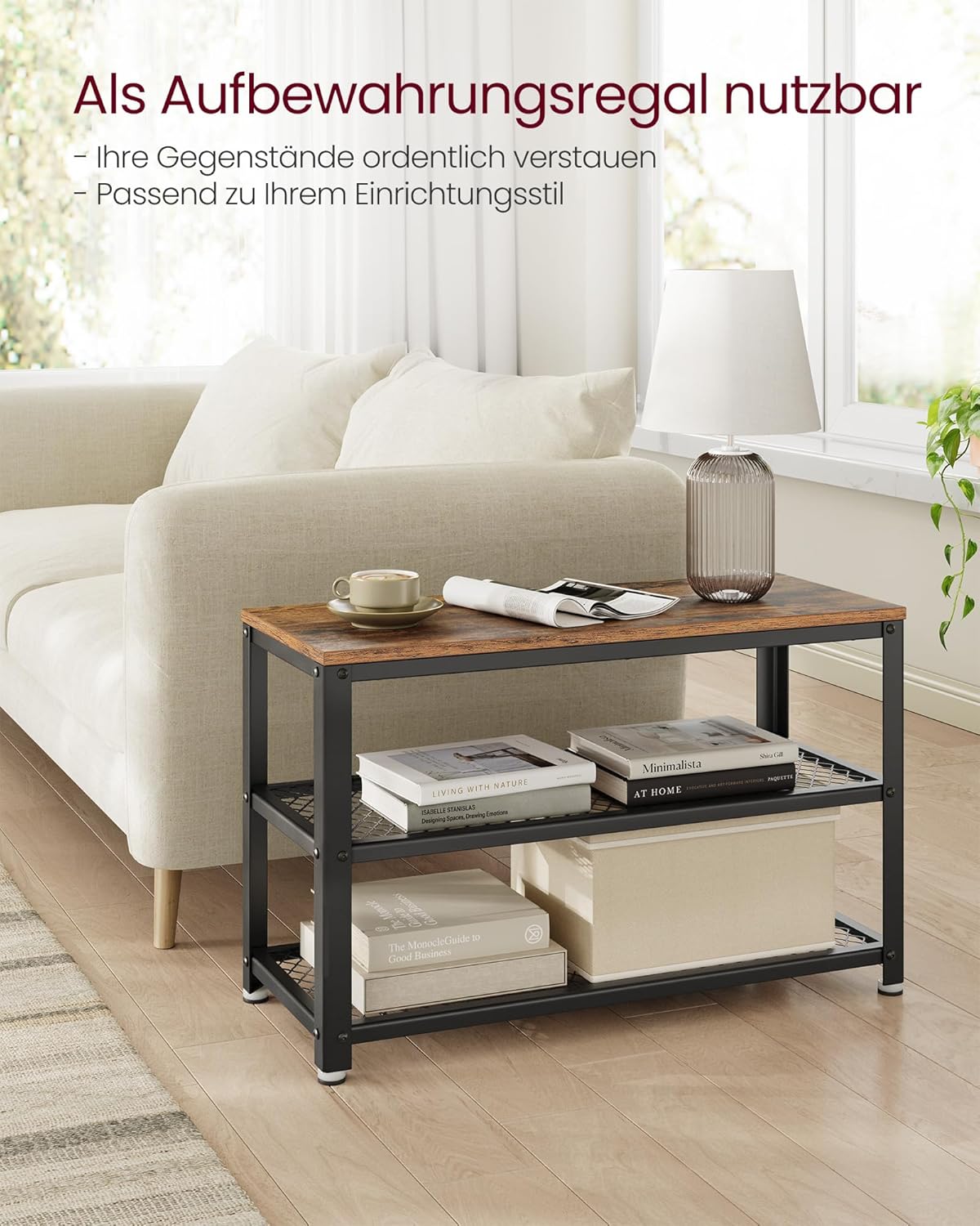 Entdecken Sie die SONGMICS Schuhbank – die perfekte Lösung für einen einladenden Eingangsbereich! Mit ihren kompakten Massen von 30 x 73 x 45 cm passt sie ideal in Flur, Wohnzimmer oder jeden anderen Raum, der eine stilvolle Aufbewahrungslösung benötigt. Das ansprechende Industrie-Design in vintagebraun und schwarz sorgt für eine warme Atmosphäre, die Sie und Ihre Gäste herzlich willkommen heisst. Sagen Sie chaotischen Schuhhaufen den Kampf an! Die zwei geräumigen Gitterablagen bieten Platz für 6-8 Paar Schuhe und helfen Ihnen, Ordnung zu schaffen. Nutzen Sie die obere Ablage auch für Ihre Taschen oder dekorative Elemente – so wird Ihr Eingangsbereich nicht nur aufgeräumt, sondern auch stilvoll präsentiert. Robust und stabil: Hergestellt aus hochfesten Holzspanplatten und einem soliden Metallgestell, trägt die Schuhbank bis zu 90 kg. Setzen Sie sich bequem, während Sie Ihre Schuhe anziehen oder auf Ihre Begleitung warten – Komfort und Funktionalität vereint! Der Aufbau ist kinderleicht! Dank der bebilderten Anleitung und der höhenverstellbaren Füsse ist die Montage im Handumdrehen erledigt. Was Sie erhalten? Eine stilvolle Schuhbank mit zwei Gitterablagen, eine verständliche Anleitung und ein praktisches Zubehörpaket. Gönnen Sie sich dieses elegante Möbelstück und verwandeln Sie Ihren Flur in einen einladenden Raum!