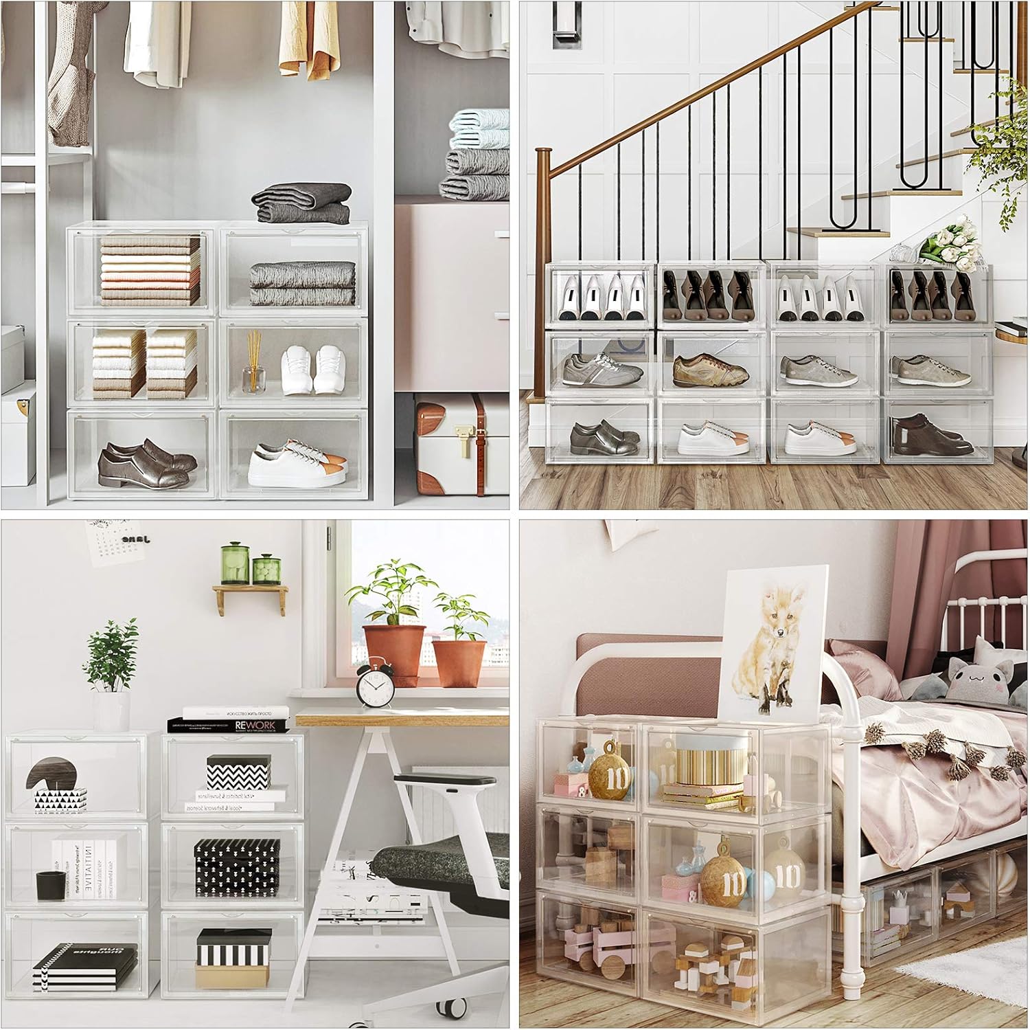 Das 6er-Set SONGMICS Schuhboxen LSP06CW bietet grosszügige, transparente Aufbewahrungsboxen für Schuhe bis Grösse 46 – stapelbar, stabil und leicht zu montieren, ideal für Sneaker, Heels und Stiefeletten.