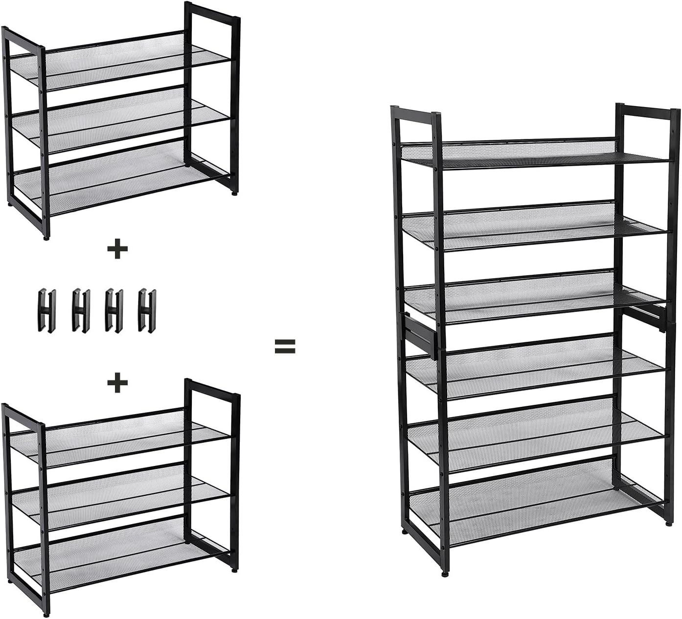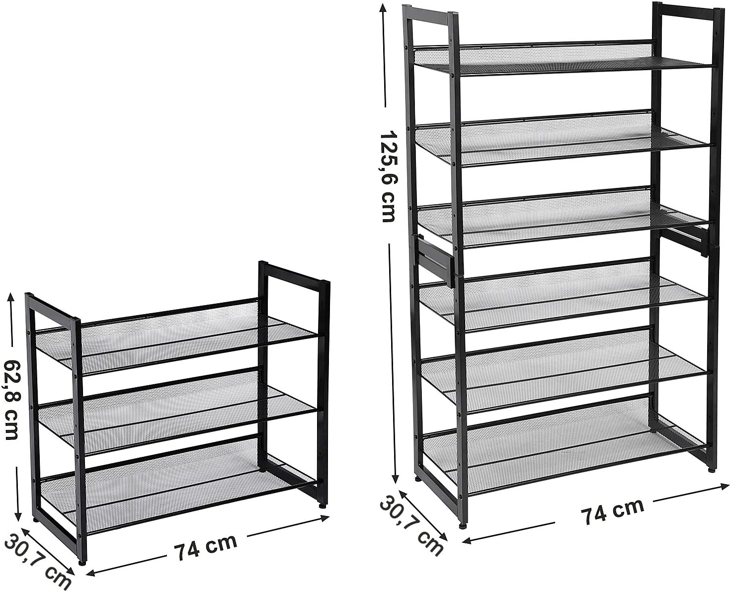 Platzsparende Aufbewahrung für bis zu 3–4 Paar Schuhe pro Ebene, Verstellbare Ablagen flach oder schräg montierbar für flexible Anordnung, Wasser- und rostbeständig mit stapelbaren Ebenen und Nivellierfüßen für Stabilität