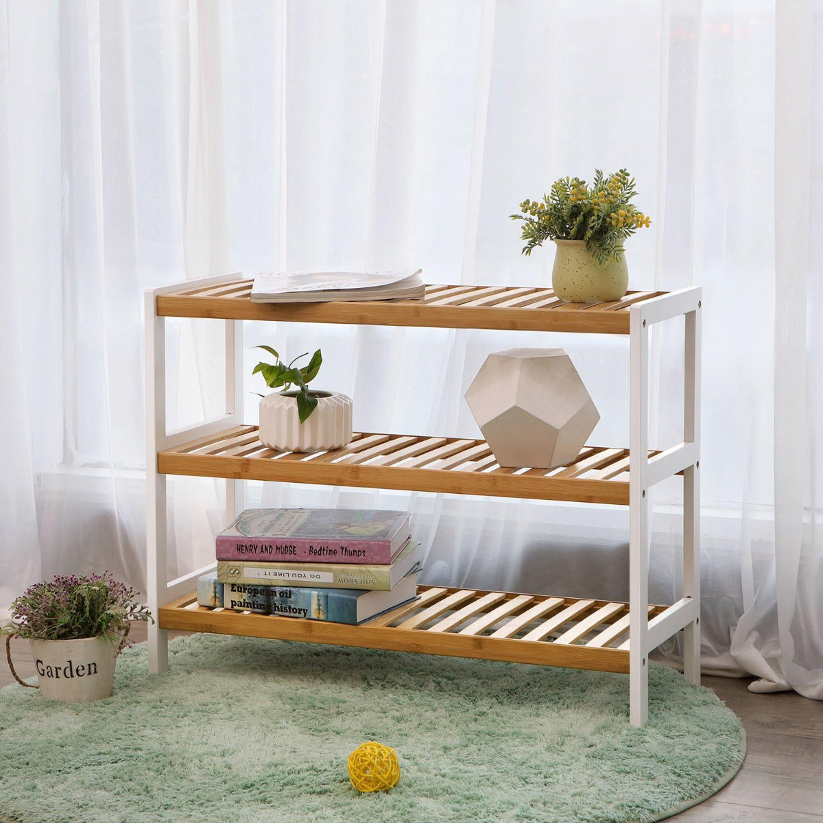 Schuhregal Schuhablage Bambus 3 Ebenen weiss-natur