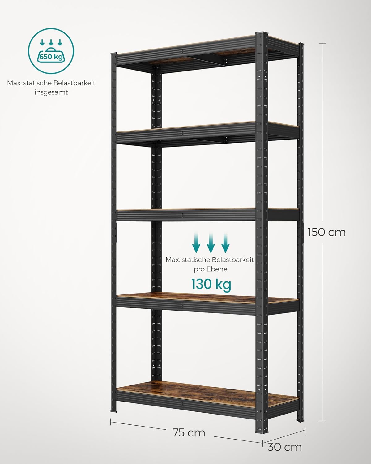 Standregal Industrie-Design mit 5 Ablagen, bis 650 kg belastbar, vintagebraun-schwarz