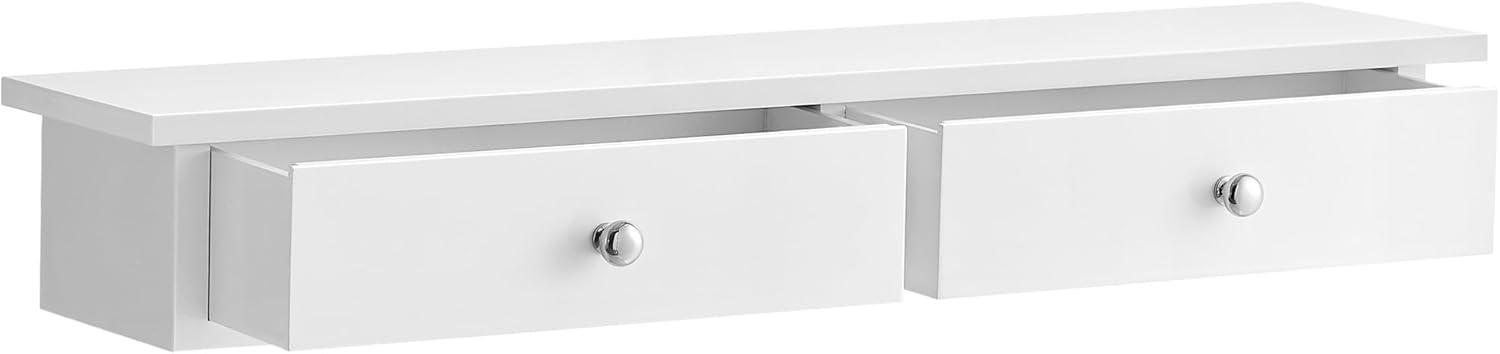 Platzsparendes Schweberegal bis 15 kg Tragkraft, Zwei Schubladen für ordentliche Aufbewahrung von Kleinteilen, Einfache Wandmontage mit integriertem Sicherheitsstopper