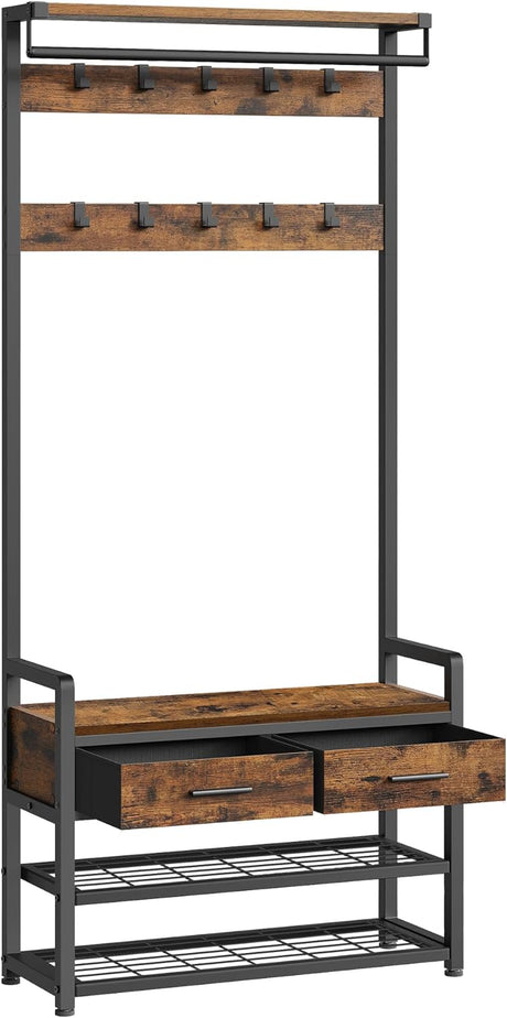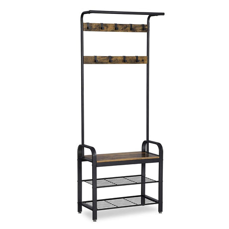 Garderobenständer mit Schuhbank und abnehmbaren Haken Vintagebraun-Schwarz