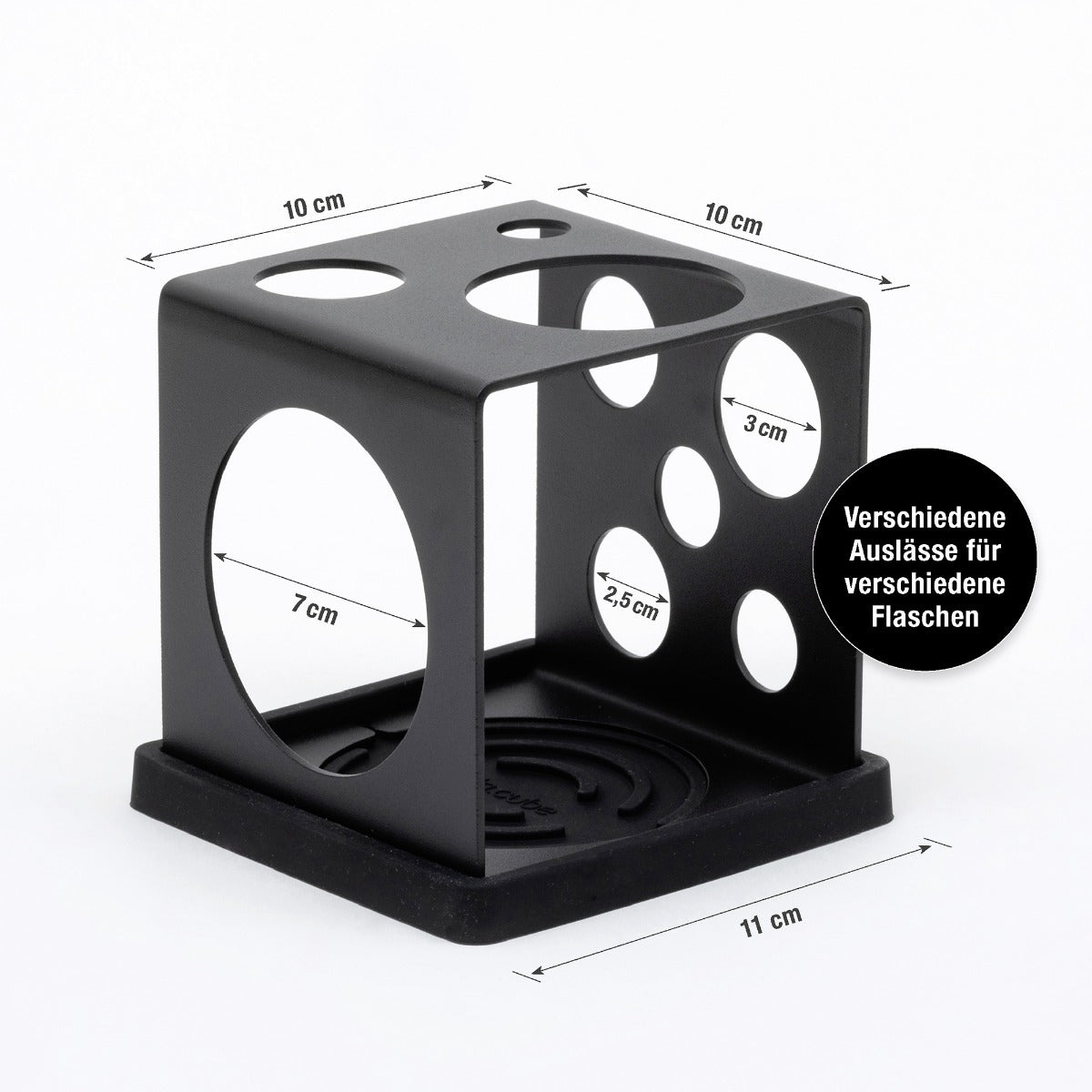 6 in one: Der «Wunder-Würfel» ist nicht nur ein edles Design-Element in Küche oder Bad, er hält auch mindestens 6 Abtropf-Funktionen für Sie bereit. Und das bei minimalistischen Massen von 11 mal 11 mal 10 cm. Durch 3 verschiedene Flaschenauslässe kompatibel mit fast allen Flaschen, Thermos-Flaschen, Thermo-Behältnissen, Glasflaschen oder Metallflaschen. Auch als Organizer und Abtropf-Vorrichtung für Kochlöffel, Pizzaschneider, Knoblauchpresse, Silikonpinsel und vieles mehr verwendbar – die Möglichleiten sind fast unendlich, obwohl Grösse und Design minimalistisch konzipiert sind. Hochwertig verarbeitet aus Edelstahl (18/8) mit einer Auffang-Matte aus lebensmittelechtem Platin-Silikon. Hitzebeständig bis 220 Grad C. Alle Teile waschbar im Geschirrspüler oder von Hand mit Seife und Spülmittel. Geschütztes Schweizer Design von Georg Fontana, ein puristisches Schmuckstück für den ganzen Haushalt, sehr flexibel, sogar als Stifte-Halter geeignet.