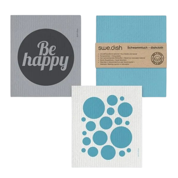 Die schwedischen ÖKO-Geschirrtücher sind extrem saugstark. Sie haben eine Saugleistung von mehr als 5 Litern pro Quadratmeter, und absorbieren das 20-fache ihres Eigengewichts an Flüssigkeit. Jedes Set besteht aus 3 Schwammtüchern (je 20,3 x 17,8 cm), 2 davon zu einem Thema mit unterschiedlichen Designs bedruckt, eines farblich passend dezent unbedruckt. Jedes Set ergibt ein harmonisches Gesamtbild. Die Reinigungstücher sind einerseits langlebig (waschbar in der Waschmaschine oder Spülmaschine bei bis zu 95 Grad C). Andererseits können die Wischtücher später einfach auf dem Kompost entsorgt werden. Sie sind komplett biologisch abbaubar. Die Tücher enthalten weder Plastik noch irgendwelche schädlichen Chemikalien. Zero waste und zero Umweltschädigung also, bis hin zur Verpackung aus Altpapier. Angenehm weich im nassen Zustand, und doch stark genug für hartnäckiges Putzen und Schrubben im trockenen Zustand, ist dieses Haushalt s-Tuch auf unterschiedlichen Flächen wie z.B. Glas, Marmor, Granit, Holz oder Edelstahl effektiv, und hinterlässt keinerlei Kratzer oder Wischspuren. Anwendbar für den ganzen Haushalt von Küche, Bad, Büro bis Auto, Garage oder Garten. Praktisch: Da jedes Set 3 verschiedene Designs hat, ist es leicht, den verschiedenen Bereichen im Haushalt eigene Wischtücher zuzuordnen.
