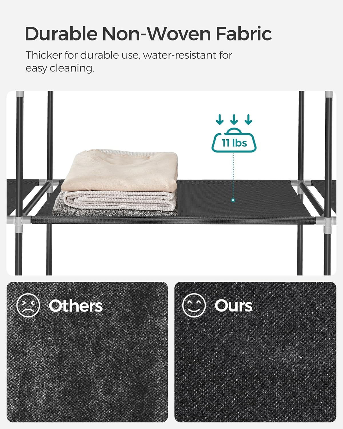 Kleiderschrank Stoffschrank mit Ablagen Schwarz