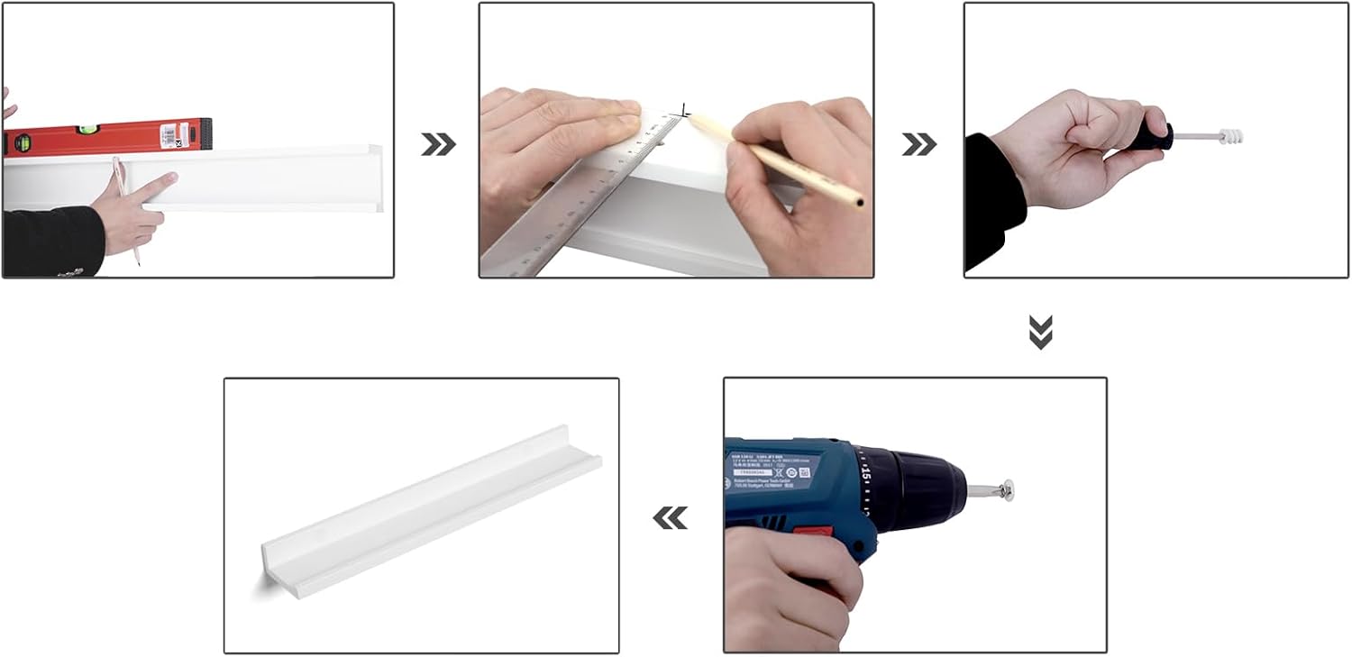 Platzsparende Schweberegale für Bilder, Bücher und Deko, Erhöhte Vorderkante verhindert Herunterfallen, Bis zu 15 kg belastbar mit einfacher Montage
