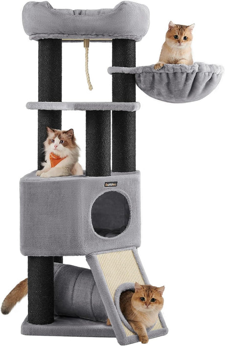 Kratzbaum mit Höhle und Hängematte hellgrau-schwarz