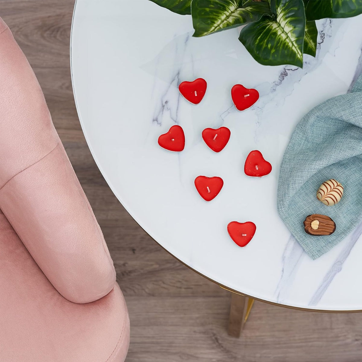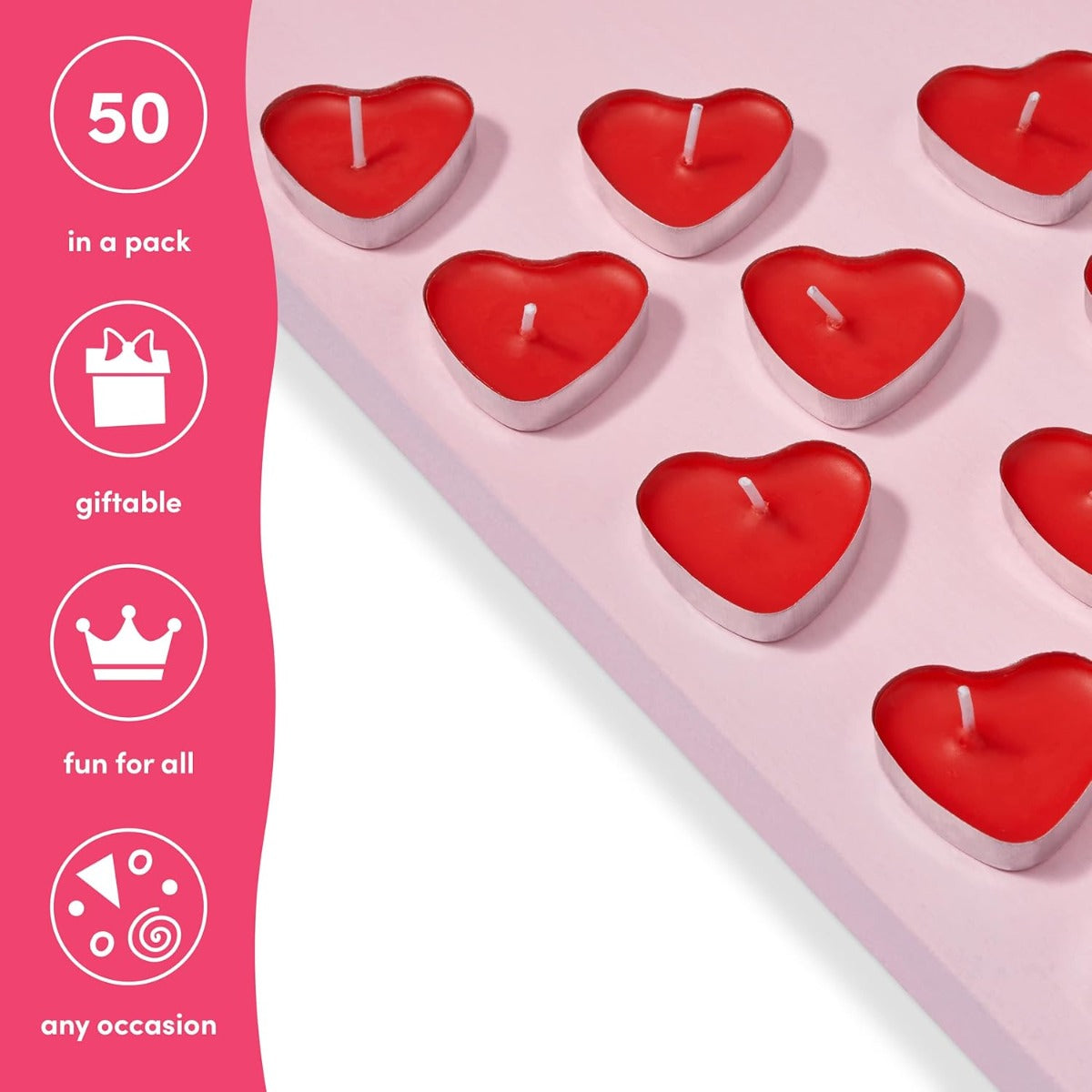 Das Set mit 50 roten, herzförmigen Duftkerzen ist ideal, um eine romantische Stimmung zu schaffen. Perfekt für besondere Anlässe wie Hochzeiten, Jubiläen oder den Valentinstag, bieten die Kerzen eine langanhaltende, saubere Brenndauer. Die zarte Duftnote und das weiche Licht tragen zur Atmosphäre bei und sorgen für eine warme, gemütliche Umgebung. Die platzsparende Grösse macht sie vielseitig einsetzbar, sei es als Tischdekoration oder im gesamten Raum verteilt.