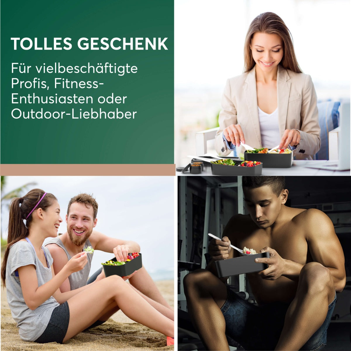 Hochwertige, BPA-freie Materialien, Auslaufsicheres Design für sorgenfreies Transportieren, Anpassbare Fächer für individuelle Essensbedürfnisse