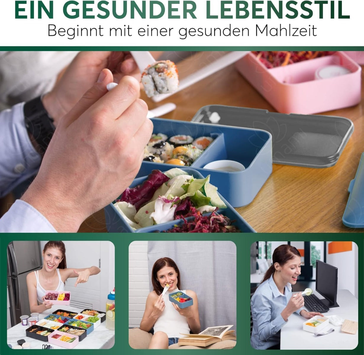 Kunden sind begeistert von der hochwertigen, BPA-freien Materialqualität der Bento Box. Besonders geschätzt wird das auslaufsichere Design, das ein sicheres Transportieren von Flüssigkeiten ermöglicht. Die praktischen Fächer sorgen dafür, dass verschiedene Speisen frisch und geschmacklich getrennt bleiben. Zudem überzeugt die Mikrowellen- und spülmaschinengeeignete Funktionalität. Die zusätzlichen Saucenbehälter erhöhen die Vielseitigkeit der Mahlzeiten und das großzügige Fassungsvermögen macht die Box ideal für vollständige Mahlzeiten und Snacks.
