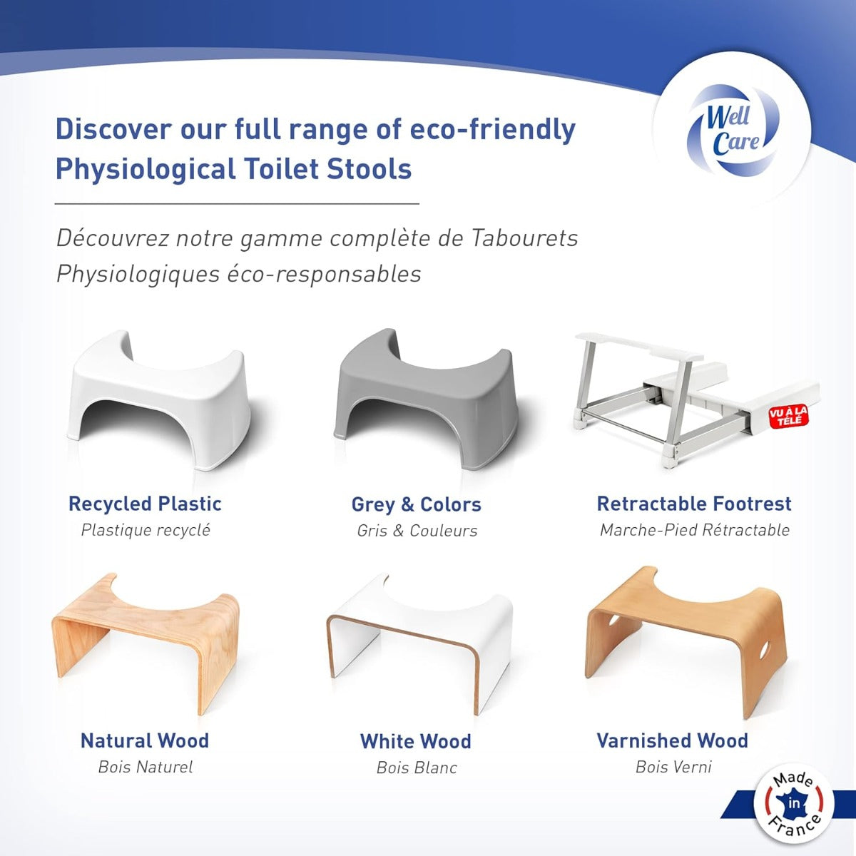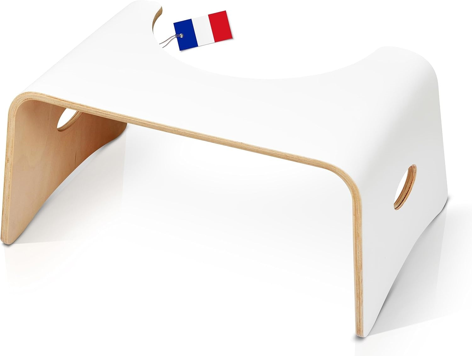 Physiologisch optimaler Toilettenhocker aus nachhaltigem, schönem lackierten Buchenholz: Tun Sie etwas für Ihre Gesundheit und damit gleichzeitig etwas für das Wohl unserer Erde. Ideal für Ihr Wohlbefinden: Mit einer Höhe von 21 cm ist dieser Toilettenhocker so konzipiert, dass Sie Ihre Füsse auf der Toilette mühelos und weit genug anheben und so die von Medizinern empfohlene Körperhaltung einnehmen können; diese trägt zur natürlichen Erleichterung bei vielen gesundheitlichen Probleme (Verstopfung, Hämorrhoiden, schwacher Beckenboden usw.) bei und ermöglicht eine vollständigere Entleerung, wodurch sich Ihr Bauch angenehm flach anfühlt. Von A bis Z in Frankreich gefertigt: Mit Holz aus heimischen Wäldern (Zentralmassiv oder Jura) und dank dem französischen Know-how eines Holzspezialisten mit über 50-jähriger Erfahrung. Umweltschonend: Der Rohstoff Buchenholz stammt aus nachhaltig bewirtschafteten, zertifizierten Wäldern; die Verpackung besteht ausschliesslich aus recycelbarem Karton, ganz ohne Plastik. Leicht zu reinigen und wasserabweisend: Dank des hochwertigen Schutzlackes. Antirutschoberfläche: Aufgrund eines speziellen Lacks, der einen rutschfesten Belag für Ihre Füsse bildet. Einzigartiges und praktisches Design: Mit Griffen, daher besonders leicht zu transportieren & verstauen. Der Toilettenhocker fügt sich harmonisch an Ihr WC an; der Hocker lässt sich bei Nichtgebrauch unauffällig unter der Toilette verstauen, braucht wenig Platz und ist nicht störend, wenn man im Stehen pinkelt. Universal: Der Hocker aus Holz ist kompatibel mit allen Arten von Standardtoiletten, einschliesslich hängenden Toiletten. Geeignet für die ganze Familie: Er kann sowohl von Erwachsenen als auch von Kindern (wenn sie alt genug sind, um alleine auf die Toilette zu gehen) verwendet werden, denn die Standardmasse sind für die meisten Modelle geeignet. Komfortabel: Dank seines hochwertigen Materials, natürliches Buchenholz, das sich weich und angenehm anfühlt und rutschfest für Ihre Füsse ist. Höhe: 21cm, Breite: 44cm, Tiefe: 30cm