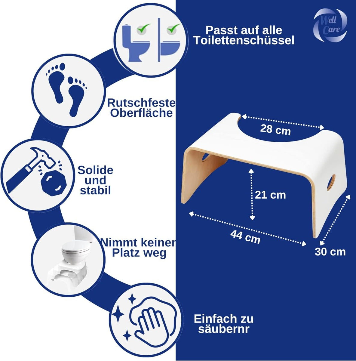 Fördert die empfohlene Körperhaltung für eine natürliche Erleichterung, Hergestellt aus nachhaltigem Buchenholz, Rutschfeste Oberfläche für sicheren Stand