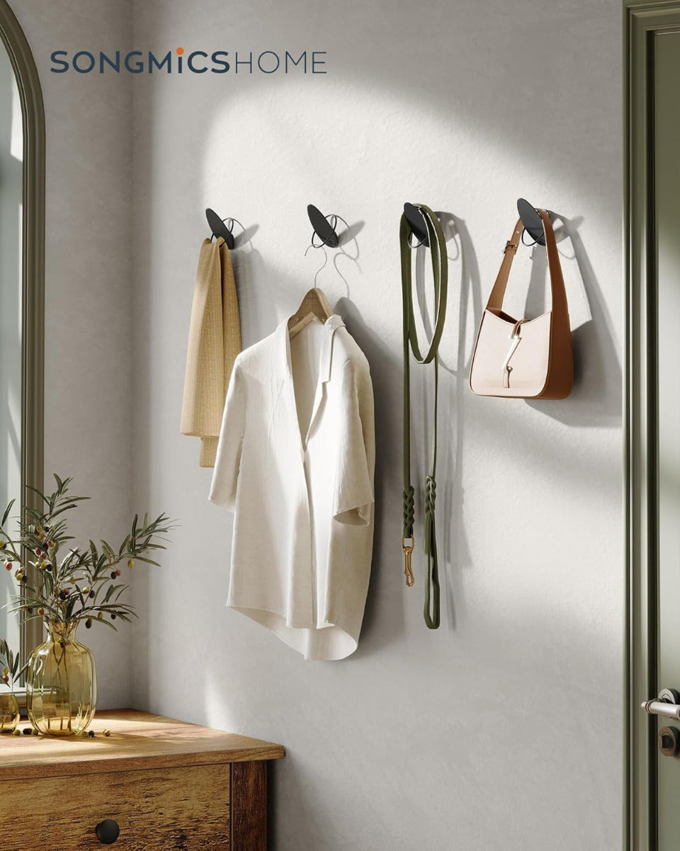 Elegant und funktional: Die SONGMICS HOME Wandhaken im 4er Set bringen stilvolle Ordnung in jeden Raum. Das moderne Ei-Design ist in zwei Farben erhältlich – Perlweiss oder Schwarz – und passt sich nahtlos an dein Zuhause an.