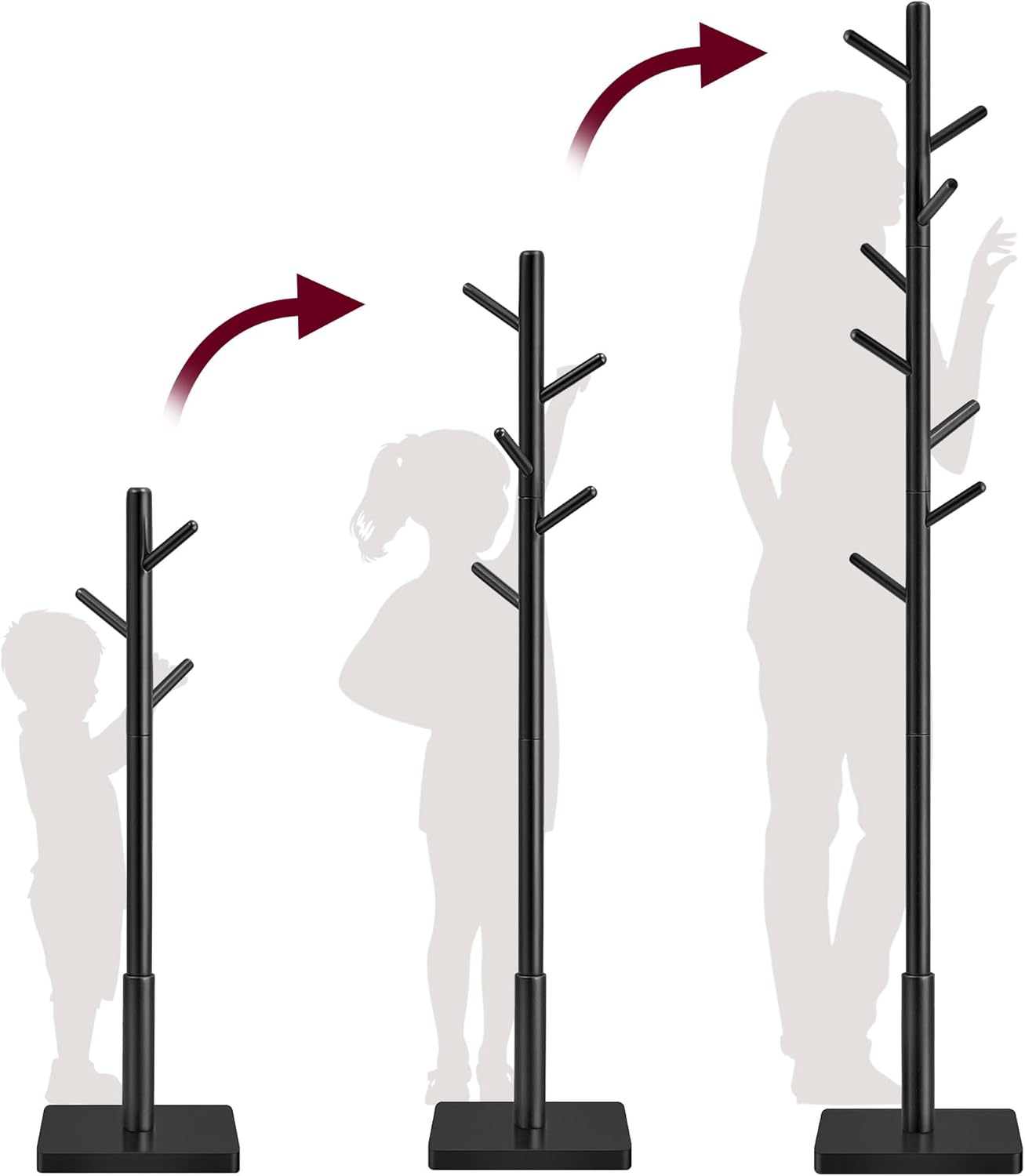 Entdecken Sie den SONGMICS Garderobenständer in stilvollem tintenschwarz – die perfekte Kombination aus Funktionalität und Eleganz für Ihr Zuhause. Dieser Kleiderständer in Baumform aus hochwertigem Holz bringt nicht nur Ordnung in Ihren Flur, sondern setzt auch einen modernen Akzent in jedem Raum. Mit seinen 8 stabilen Haken bietet der Garderobenständer ausreichend Platz für Jacken, Hüte und mehr. Die integrierten Gewindeteile ermöglichen eine kinderleichte Montage: Einfach die Haken an ihren Platz drehen und der Anleitung folgen – schon ist Ihr neuer Garderobenständer einsatzbereit! Hergestellt aus robustem Kautschukholz und dreischichtig lackiert, garantiert dieser Ständer eine langanhaltende Stärke und eine glatte, kleidungsfreundliche Oberfläche. Dank der 3 Höhenoptionen passt er sich mühelos an die Bedürfnisse Ihrer Familie an und sorgt für eine problemlose Nutzung. Die stabile Haltestange mit einem Durchmesser von 4 cm ist fest mit den Ästen verbunden und wird von einem quadratischen Sockel gestützt, der für zusätzliche Stabilität sorgt. Mit einer Tragkraft von bis zu 24 kg (3 kg pro Haken) ist dieser Jackenständer sowohl zuverlässig als auch praktisch. Sein minimalistisches Design fügt sich nahtlos in jeden Raum ein – ob Flur, Schlafzimmer, Büro oder Empfangsraum. Der SONGMICS Garderobenständer ist mehr als nur ein funktionales Möbelstück; er verleiht Ihrem Zuhause einen Hauch von Eleganz und Stil. Holen Sie sich jetzt diesen zeitlosen Begleiter für Ihr Zuhause!