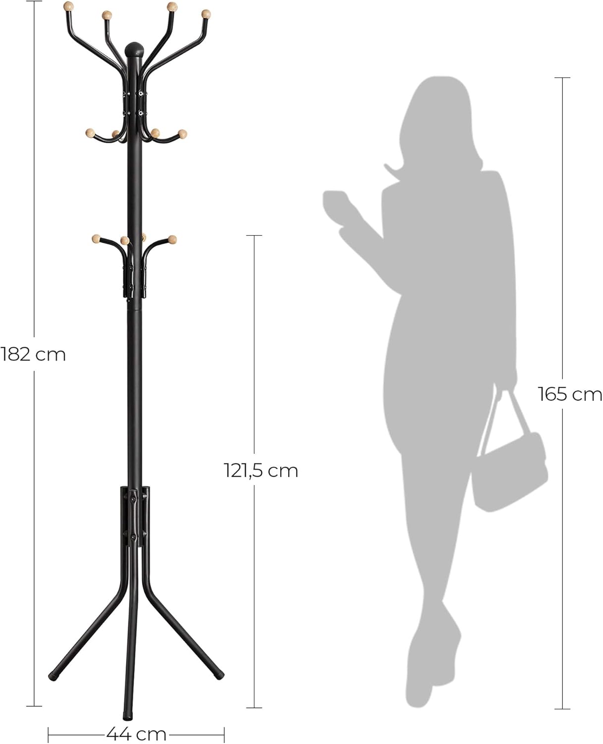 Entdecken Sie den SONGMICS Garderobenständer aus Metall – die perfekte Lösung für Ordnung und Stil in Ihrem Flur! Mit einer Höhe von 182 cm und einem modernen, schlichten Design in elegantem Schwarz bringt dieser Kleiderständer nicht nur Struktur in Ihr Zuhause, sondern verleiht ihm auch eine frische und beruhigende Atmosphäre. Stabilität und Langlebigkeit stehen bei uns an erster Stelle. Aus robustem Metall gefertigt, ist dieser Garderobenständer darauf ausgelegt, Ihnen über viele Jahre hinweg treue Dienste zu leisten. Die 12 Haken mit Kugelenden sorgen dafür, dass Ihre Kleidung beim Aufhängen nicht beschädigt wird – so können Sie Ihre Jacken und Taschen ganz entspannt aufhängen. Rost hat bei diesem Garderobenständer keine Chance! Die hochwertige schwarze Lackierung macht ihn nicht nur schick, sondern auch rostbeständig und pflegeleicht. Ein einfaches Wischen mit einem weichen Tuch genügt, um ihn in neuem Glanz erstrahlen zu lassen. Mit dem beiliegenden Montagewerkzeug und der ausführlichen Anleitung ist der Aufbau ein Kinderspiel. Verabschieden Sie sich von Chaos im Flur – hängen Sie Ihre Kleidung, Taschen und Hüte einfach an die praktischen Haken und geniessen Sie die neu gewonnene Ordnung! Holen Sie sich jetzt den SONGMICS Garderobenständer und bringen Sie Stil und Funktionalität in Ihr Zuhause!