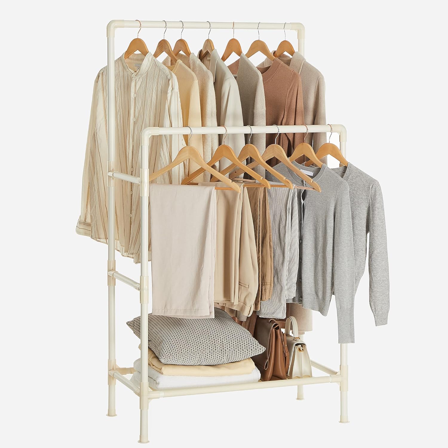 Kunden begeistern vor allem die stabile, wackelsichere Konstruktion und die clevere Doppelstange, die Hemden, Kleider und Hosen optimal trennt. Besonders geliebt werden die praktische Ablage für Schuhe, die leichte Montage ohne Werkzeug, das geringe Gewicht für flexiblen Einsatz und das stylische, platzsparende Design.