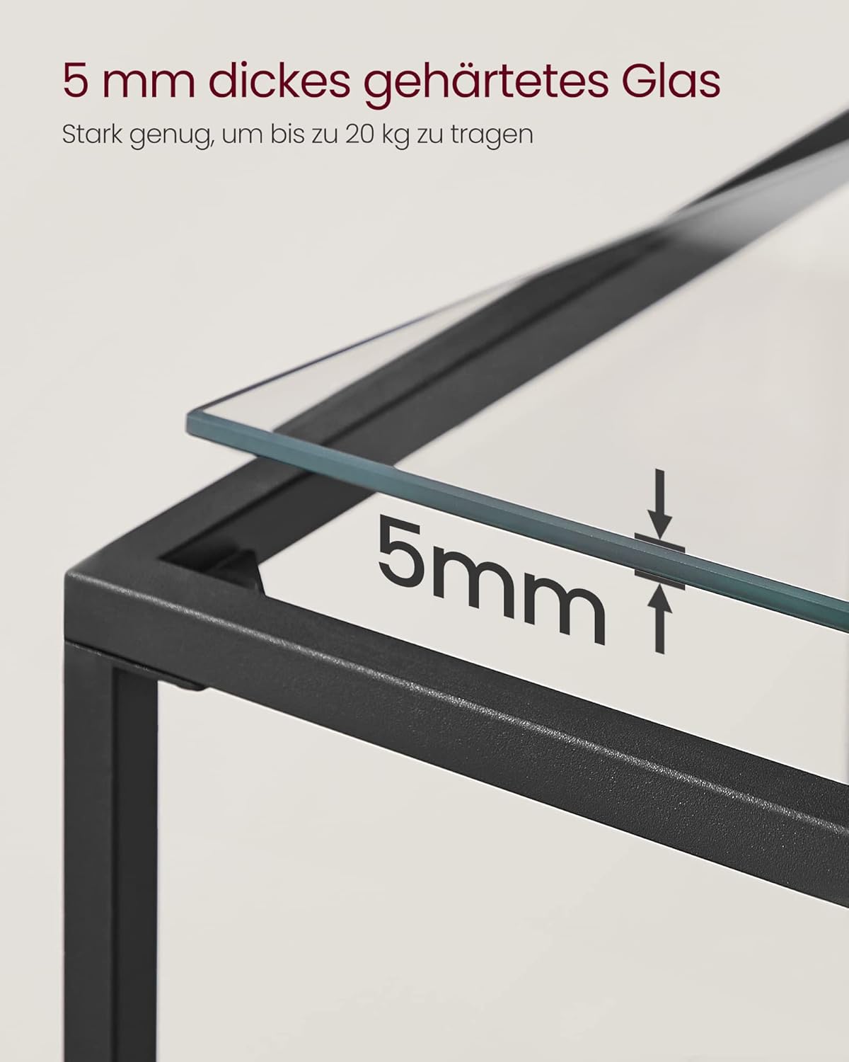 Platzsparende Ablagefläche für Schlüssel, Deko und Elektronik, 5 mm Sicherheitsglasplatte trägt bis zu 20 kg, Verstellbare Füße für sicheren Stand auf unebenem Boden