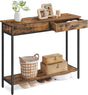 Industrial-Charme für Ihr Zuhause: Der VASAGLE Konsolentisch LNT015B01 kombiniert eine rustikalbraune Holzoptik mit tintenschwarzem Stahl und bietet eine schlanke Ablagefläche samt zwei Schubladen für Schlüssel, Post und Kleinigkeiten. Perfekt für Flur oder Wohnzimmer sorgt er mit stabiler Konstruktion, unterer Ablage und verstellbaren Füssen für Ordnung und Stil auf wenig Raum. Ein praktisches, vielseitiges Möbelstück im angesagten Loft-Look.