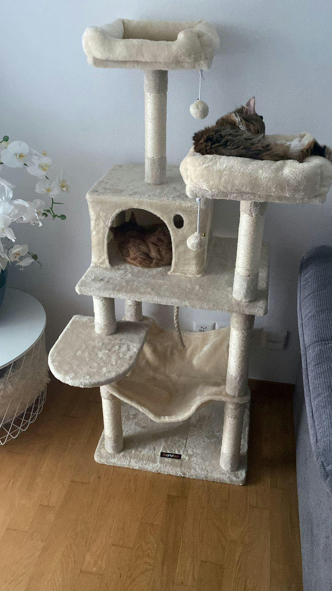 Kratzbaum Mehrstöckig mit Hängematte Beige