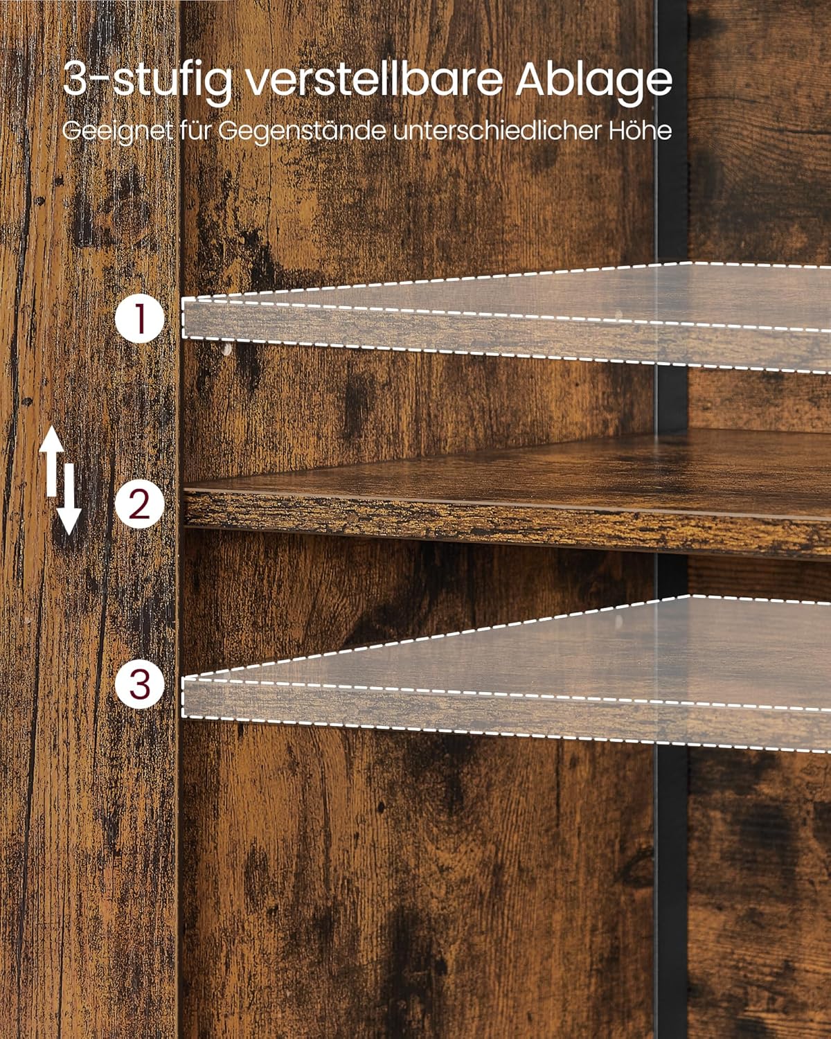 Entdecken Sie den SONGMICS Küchenschrank, ein wahres Multitalent für Ihr Zuhause! Mit seinen grosszügigen Abmessungen von 35 x 60 x 124,5 cm bietet dieser stilvolle Schrank nicht nur eine grosse Oberfläche, sondern auch zwei offene Fächer und einen Schrank mit einem 3-stufig verstellbaren Einlegeboden hinter den Türen. Ob Bücher, Dekorationen, Küchenutensilien oder Bürozubehör – hier findet alles seinen Platz. Dank des stabilen Stahlrahmens und der verstellbaren Füsse steht der Küchenschrank selbst auf leicht unebenen Böden sicher und fest. Der mitgelieferte Kippschutz sorgt zusätzlich für mehr Stabilität, sodass Sie sich keine Sorgen um Ihre wertvollen Gegenstände machen müssen. Die Kombination aus hochwertigen Spanplatten und solidem Stahl macht diesen Aufbewahrungsschrank nicht nur robust, sondern auch langlebig. Er bietet starken Halt für Ihr Geschirr und andere wichtige Utensilien, sodass Sie lange Freude daran haben werden. Vielseitigkeit wird bei diesem Bücherregal grossgeschrieben! Ob als Wohnzimmerschrank, Beistellschrank in der Küche oder Aktenschrank im Arbeitszimmer – der SONGMICS Küchenschrank passt sich Ihren Bedürfnissen an und bringt gleichzeitig einen Hauch von Vintage-Charme in Ihr Zuhause. Die Montage? Kein Problem! Dank der klar gekennzeichneten Teile und der leicht verständlichen Anleitung ist der Aufbau im Handumdrehen erledigt. Holen Sie sich den SONGMICS Küchenschrank und verwandeln Sie Ihr Zuhause in einen stilvollen und funktionalen Raum!
