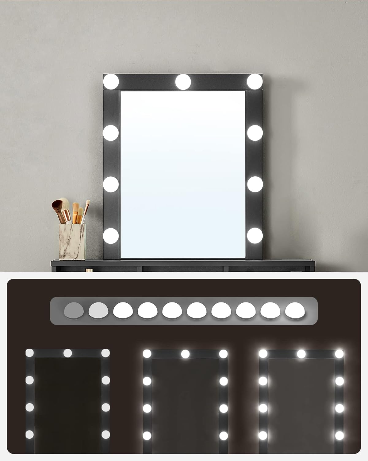 Schminktisch LED Spiegel Schubladen modern schwarz