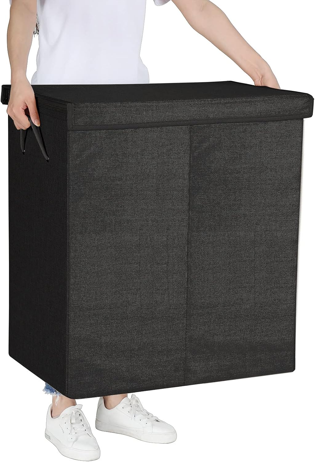 Wäschekorb faltbar mit Trennwand Schwarz ist auf Lager und wird versandt, sobald es wieder verfügbar ist