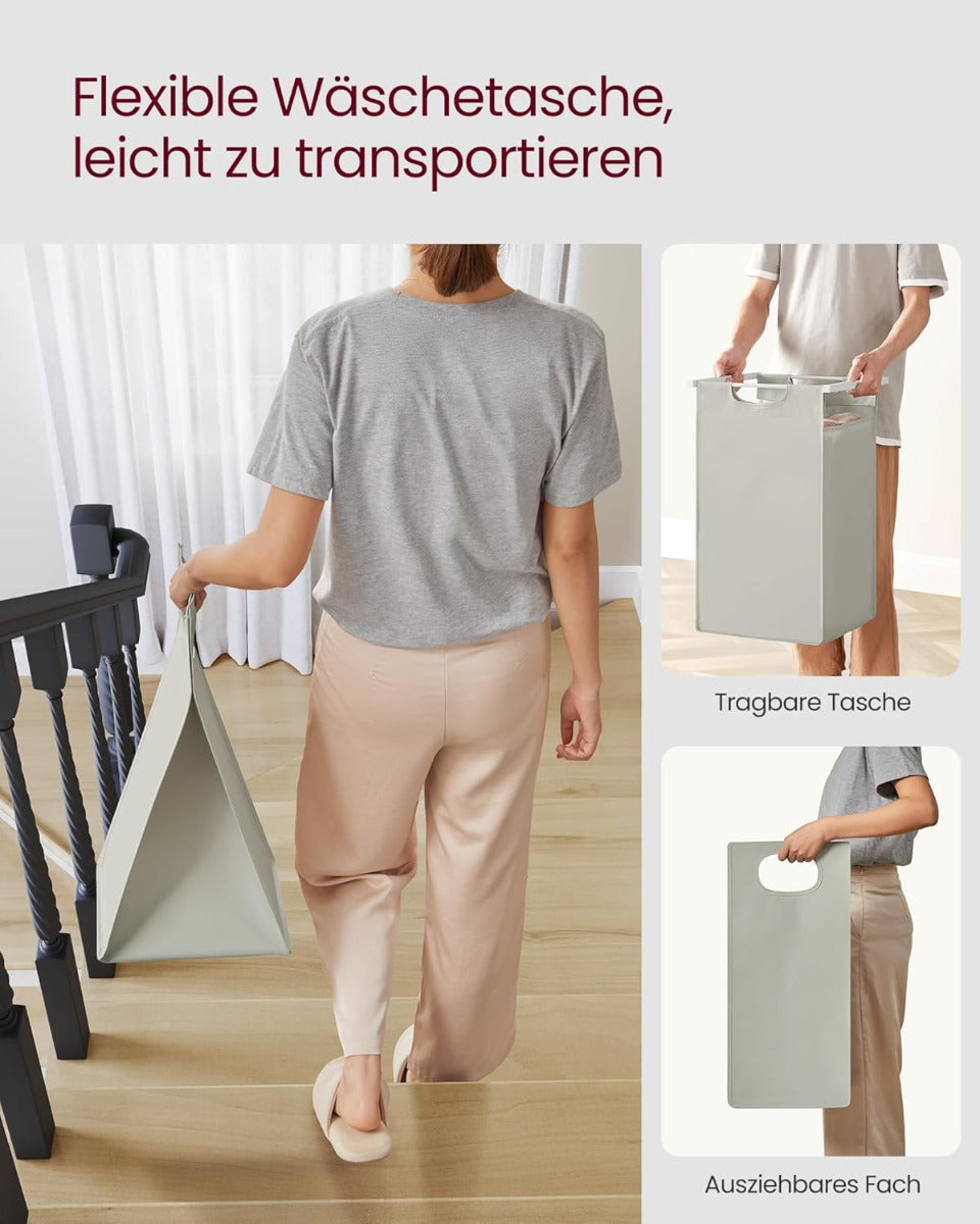 Erleben Sie mit dem SONGMICS Wäschekorb die perfekte Kombination aus Stil und Funktionalität – trennen Sie Ihre Wäsche mühelos und halten Sie alles frisch und organisiert. Investieren Sie in eine langlebige Lösung für Ihre Wäscheaufbewahrung und geniessen Sie den zusätzlichen Stauraum in Ihrem Zuhause.