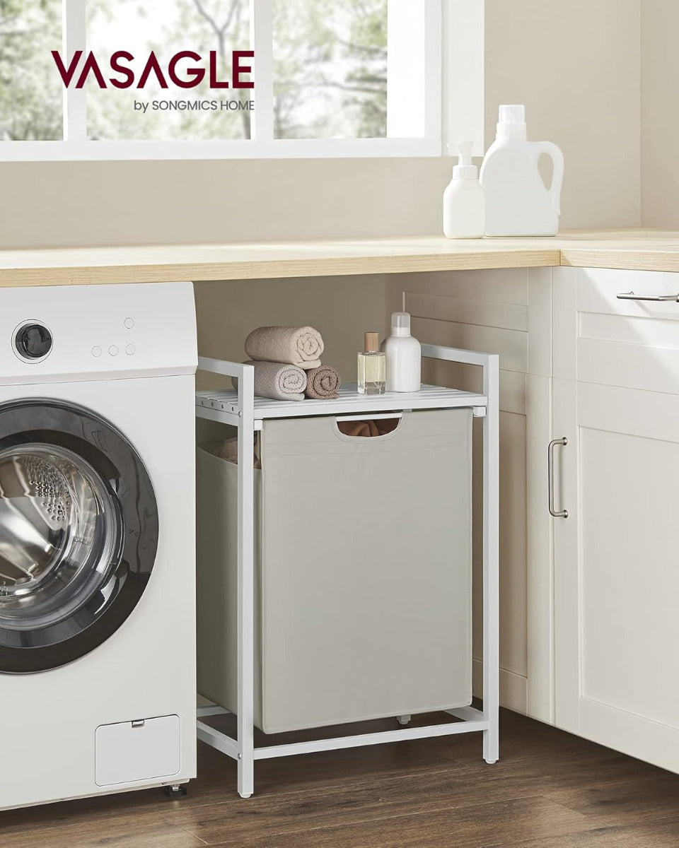 65 Liter Fassungsvermögen, kompakt für enge Räume, abnehmbarer Wäschesack mit Klettverschluss für einfachen Transport, Lamellen-Design für optimale Luftzirkulation und Geruchsschutz