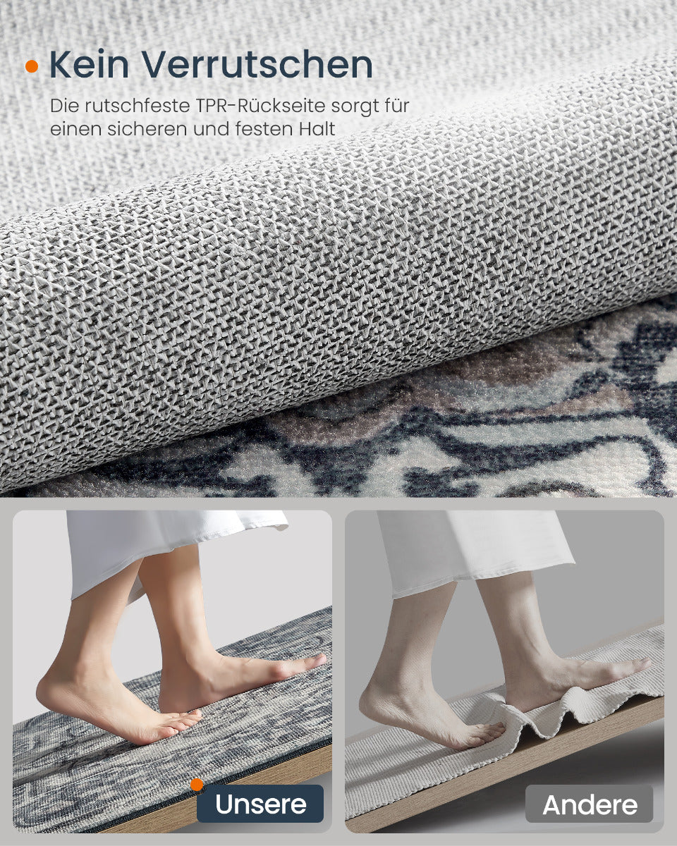 Rutschfeste TPR-Rückseite für sicheren Halt, Maschinenwaschbar und pflegeleicht, Schützt empfindliche Böden vor Kratzern und Abnutzung.