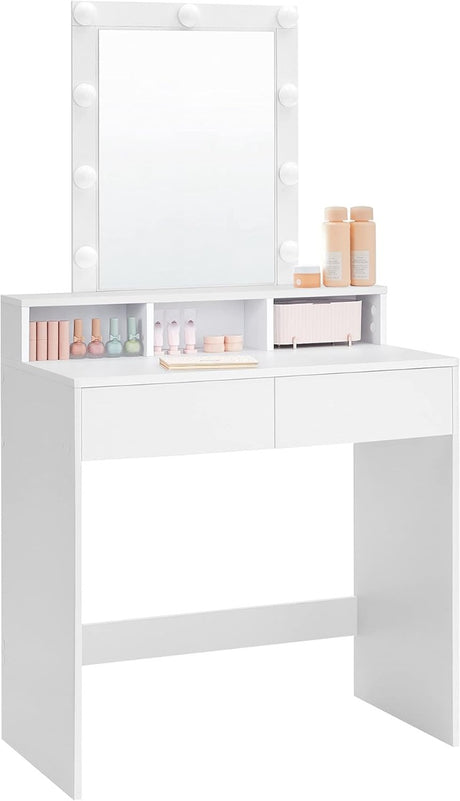 Schminktisch LED Beleuchtung Spiegel Schubladen, 80 x 40 x 140 cm, Weiss