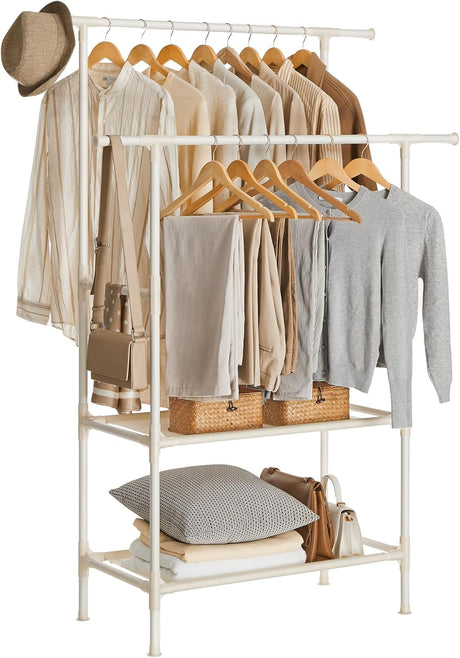 Kleiderständer Metall mit 2 Stangen und 2 Ablagen Weiss