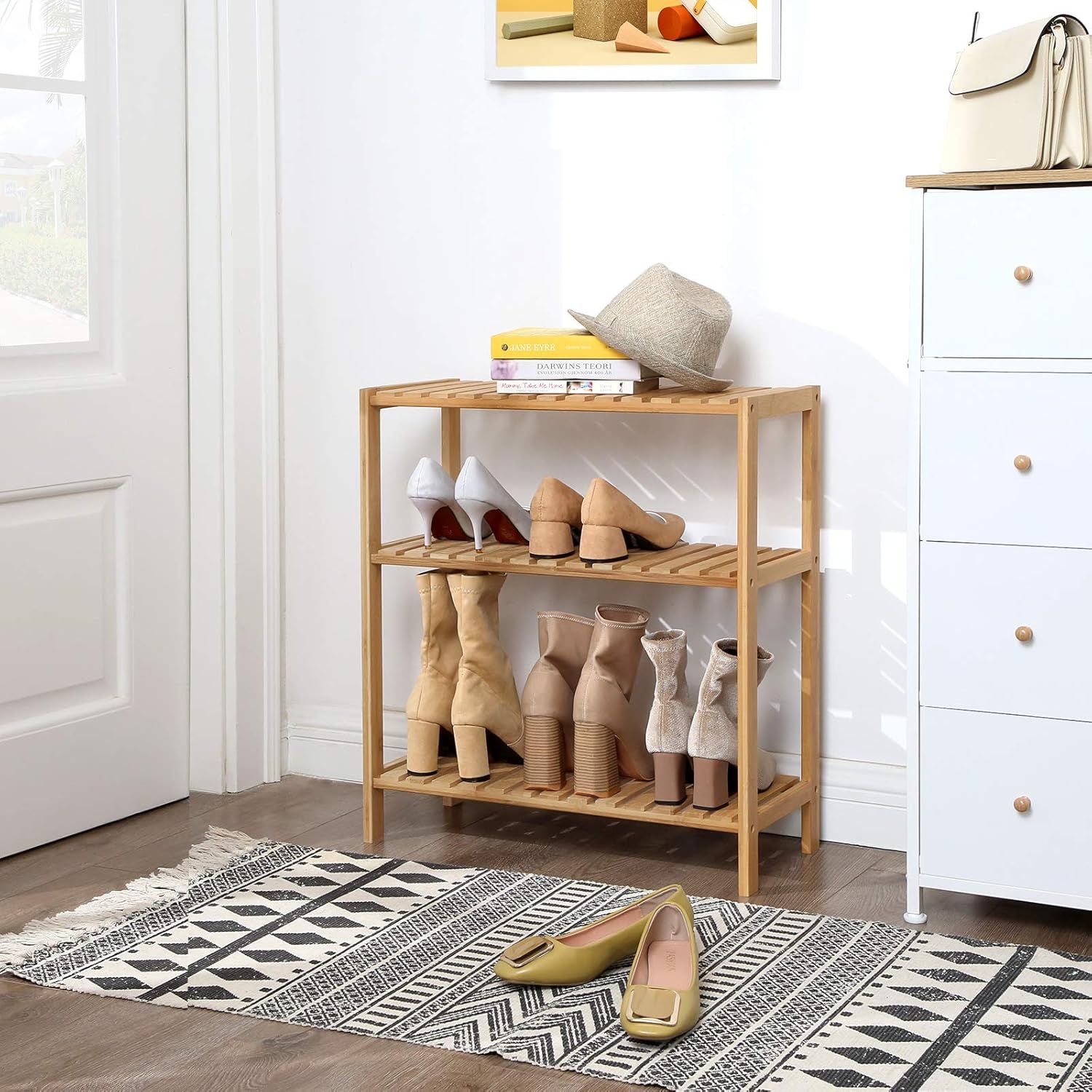 Entdecken Sie das SONGMICS Badezimmerregal – die perfekte Lösung für Ihre Aufbewahrungsbedürfnisse! Mit seinen drei verstellbaren Ablagen passt sich dieses vielseitige Standregal ganz nach Ihren Wünschen an. Egal, ob Sie es im Badezimmer, Wohnzimmer, Flur oder in der Küche nutzen möchten, es bietet Ihnen die Flexibilität, Gegenstände unterschiedlicher Grösse ordentlich zu verstauen. Hergestellt aus robustem Bambus, überzeugt das Regal nicht nur durch seine hohe Stabilität, sondern auch durch eine beeindruckende Belastbarkeit von bis zu 10 kg pro Ablage. Die durchdachte Konstruktion sorgt dafür, dass Wasser nicht auf den Ablagen stehen bleibt, was die Langlebigkeit des Regals garantiert. Das schlichte, naturbeige Design bringt einen frischen Akzent in Ihr Zuhause und fügt sich harmonisch in jede Einrichtung ein. Die glatte Oberfläche macht die Reinigung zum Kinderspiel – so bleibt Ihr Regal immer in Topform. Der Aufbau ist kinderleicht: Dank der praktischen Seitenrahmen, die aus nur einem Stück bestehen, können Sie die Ablagen im Handumdrehen montieren. Kein Fachwissen erforderlich – einfach zusammenstecken und schon ist Ihr neues Lieblingsregal bereit für den Einsatz! Verleihen Sie Ihrem Raum mit dem SONGMICS Badezimmerregal eine stilvolle und funktionale Note. Organisieren Sie Ihre Schuhe im Flur, präsentieren Sie Topfpflanzen auf dem Balkon oder halten Sie Ihr Badezimmer ordentlich – die Möglichkeiten sind endlos!