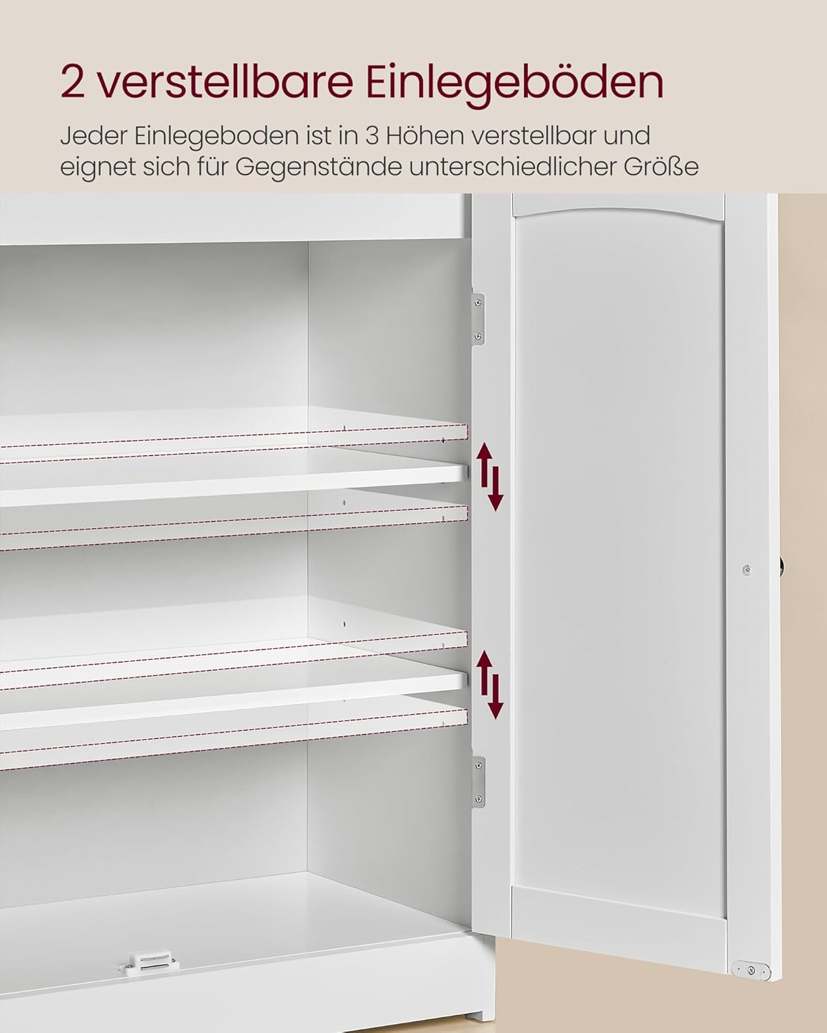 Entdecken Sie den SONGMICS Badezimmerschrank – die perfekte Lösung für all Ihre Aufbewahrungsbedürfnisse! Mit seinen kompakten Massen von 30 x 60 x 100 cm bietet dieser Badschrank nicht nur reichlich Stauraum, sondern fügt sich auch harmonisch in jede Einrichtung ein. Die zwei offenen Ablagen im oberen Bereich sind ideal für Ihre häufig verwendeten Toilettenartikel. So haben Sie alles Wichtige stets im Blick und schnell zur Hand. Hinter den zwei Türen verbergen sich drei Fächer, die Ihnen helfen, Ordnung zu halten und Unordnung zu verstecken. Dank der zwei höhenverstellbaren Einlegeböden können Sie den Stauraum ganz nach Ihren Bedürfnissen anpassen – ob grosse Shampooflaschen, Handtücher oder kleine Tiegel, alles findet seinen Platz. Sicherheit und Stabilität stehen bei diesem Schrank an erster Stelle. Die Schutzkante sorgt dafür, dass nichts herunterfällt, und der mitgelieferte Kippschutz ermöglicht eine sichere Wandmontage. Das schlichte Design in wolkenweiss verleiht dem Badezimmerschrank einen minimalistischen und stilvollen Charme, der in jedem Raum – sei es Bad, Esszimmer oder Wohnzimmer – zum echten Blickfang wird. Bringen Sie Ordnung und Stil in Ihr Zuhause mit dem SONGMICS Badezimmerschrank!